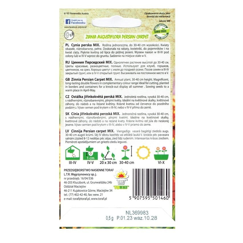 CYNIA PERSKA mix kolorów nasiona kwiatów 0,5g