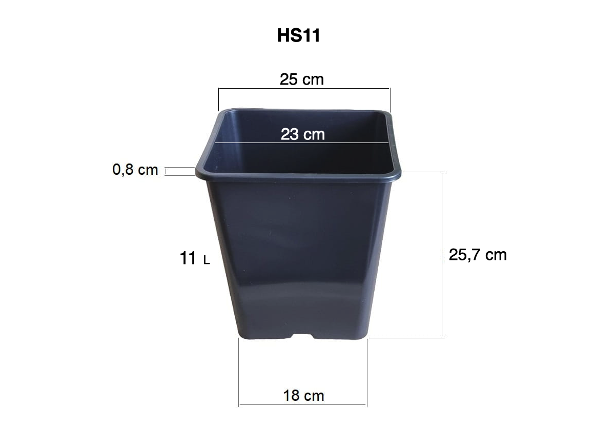 Doniczki kwadratowe 11L 25cm HS11 x 10szt. na pomidory ogórki krzewy iglaki