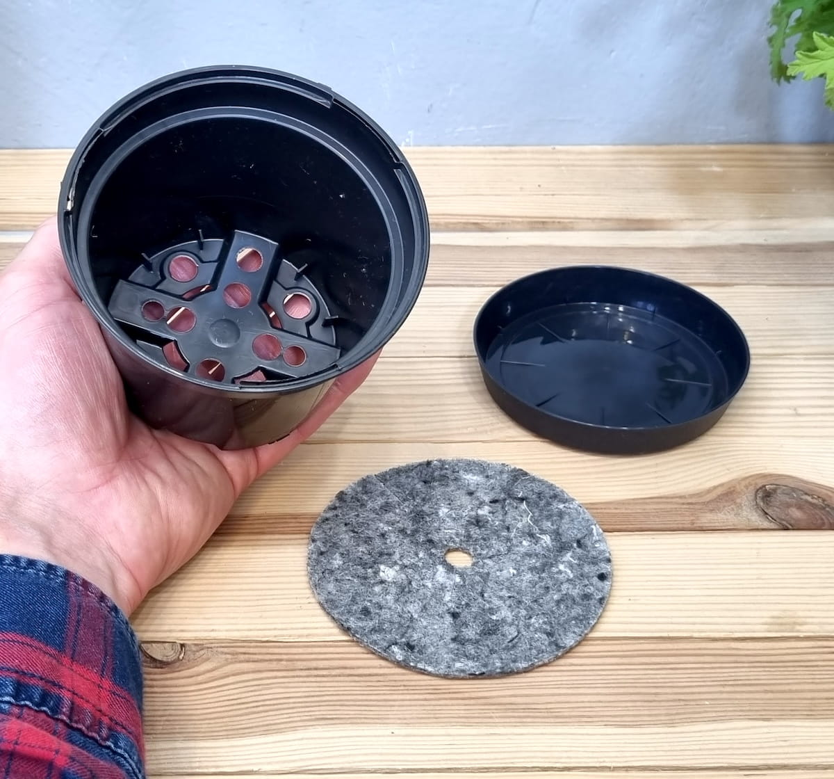 Doniczka uprawowa z podstawką i osłoną filcową: