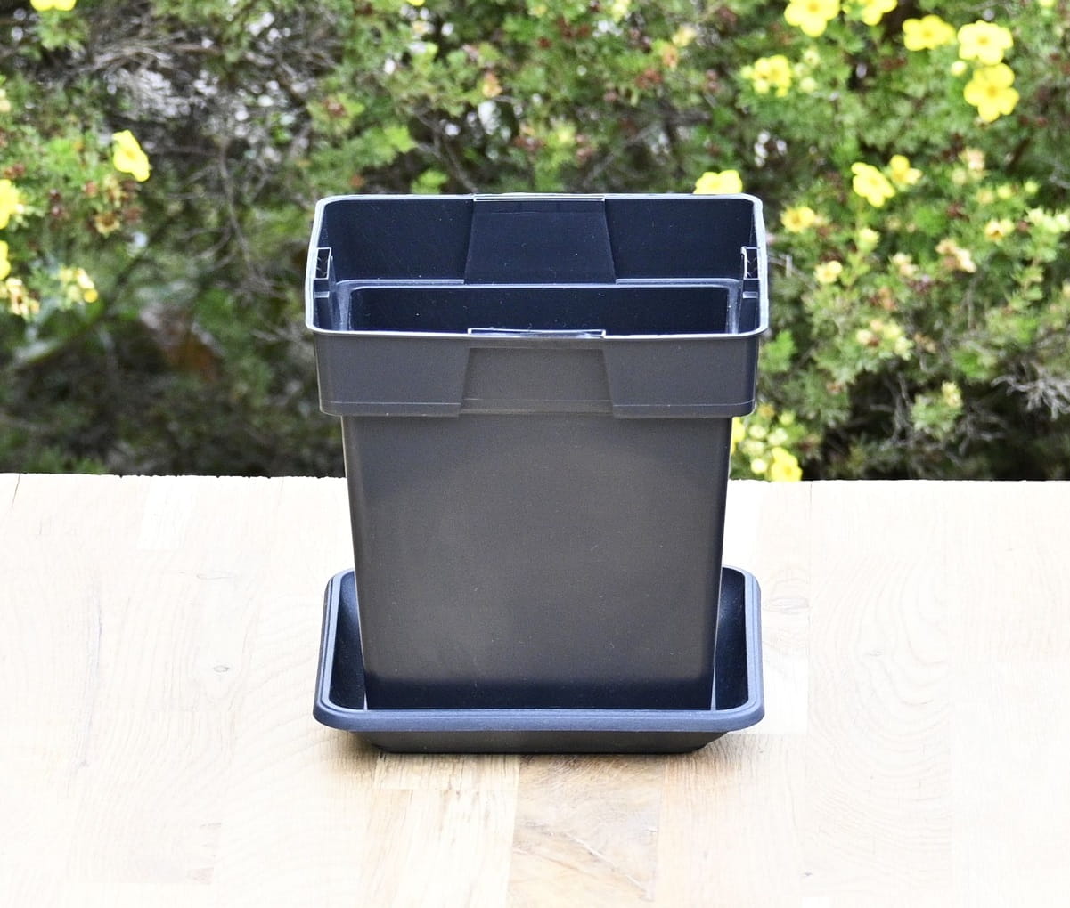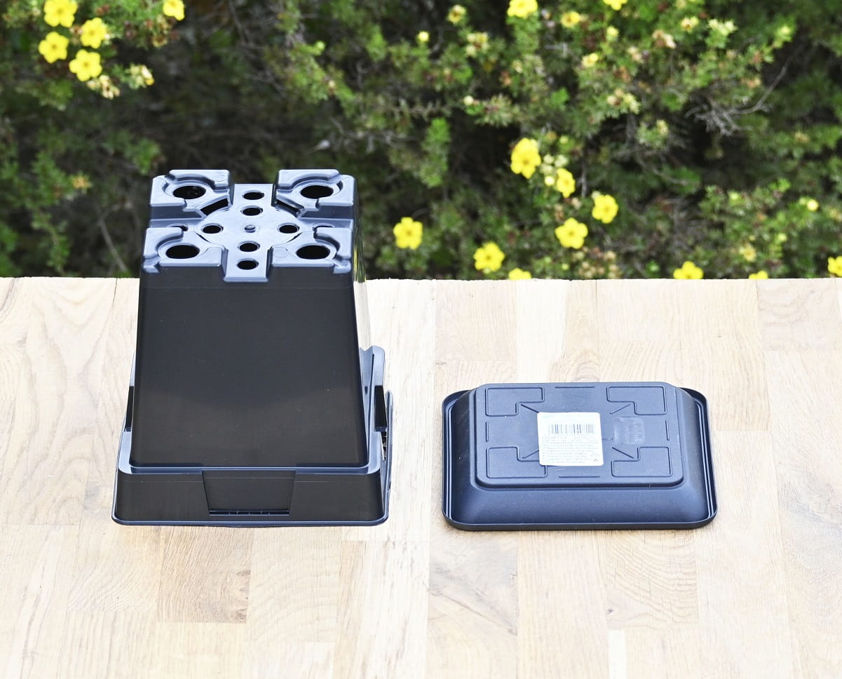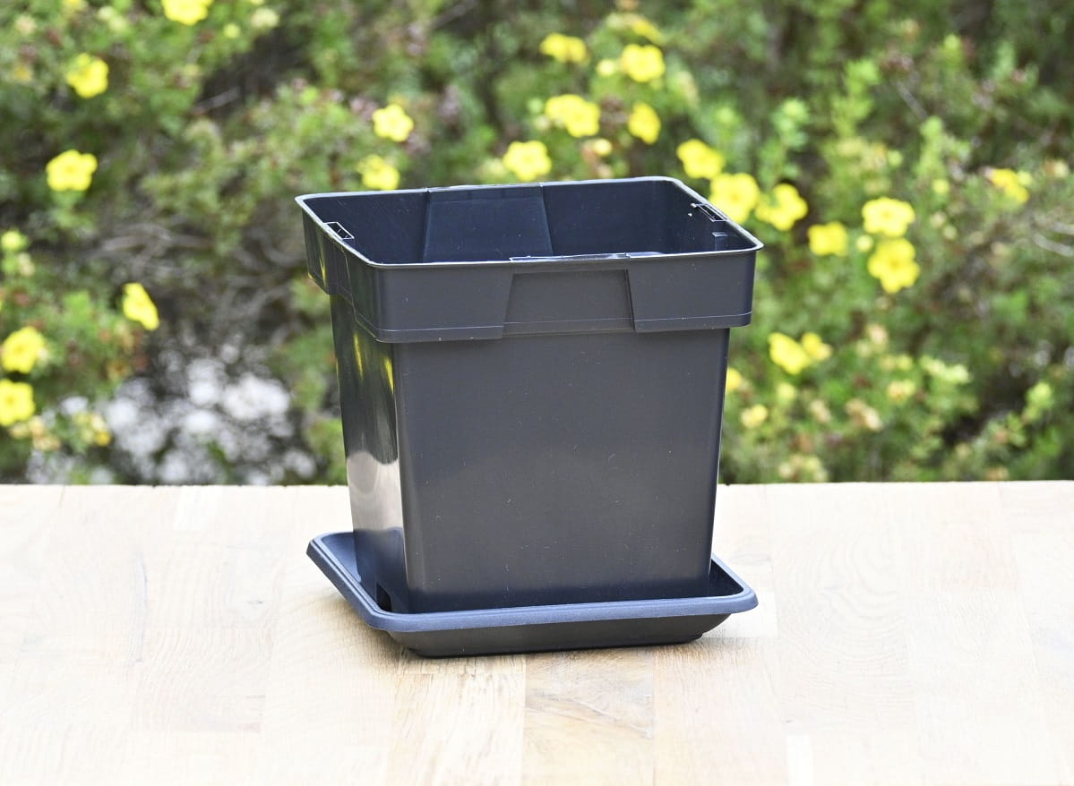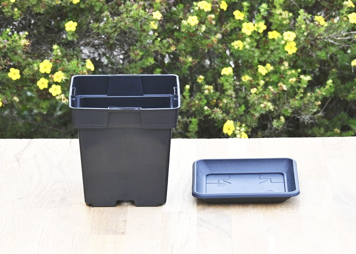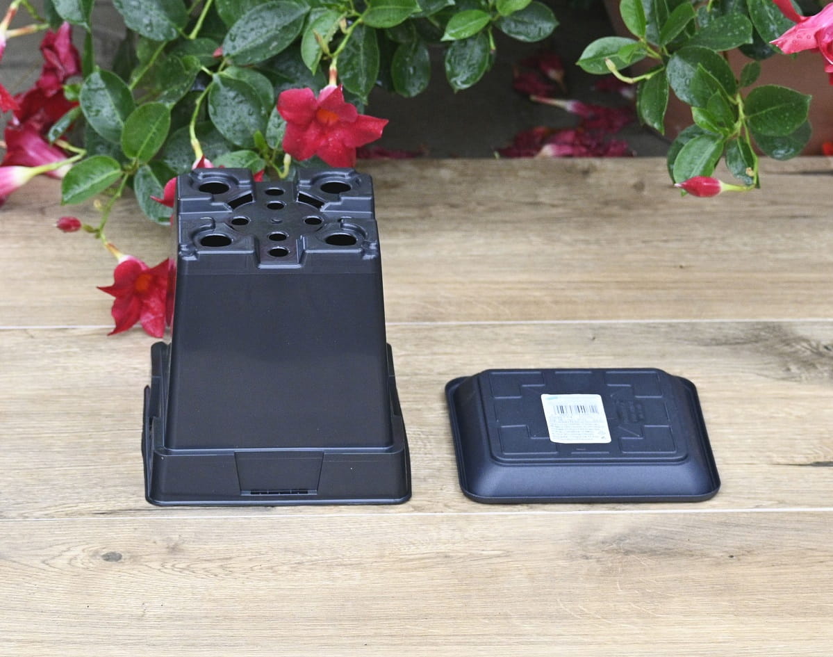 Doniczka produkcyjna plastikowa kwadratowa 4L pojemności w zestawie z podstawką i osłoną ściółkującą