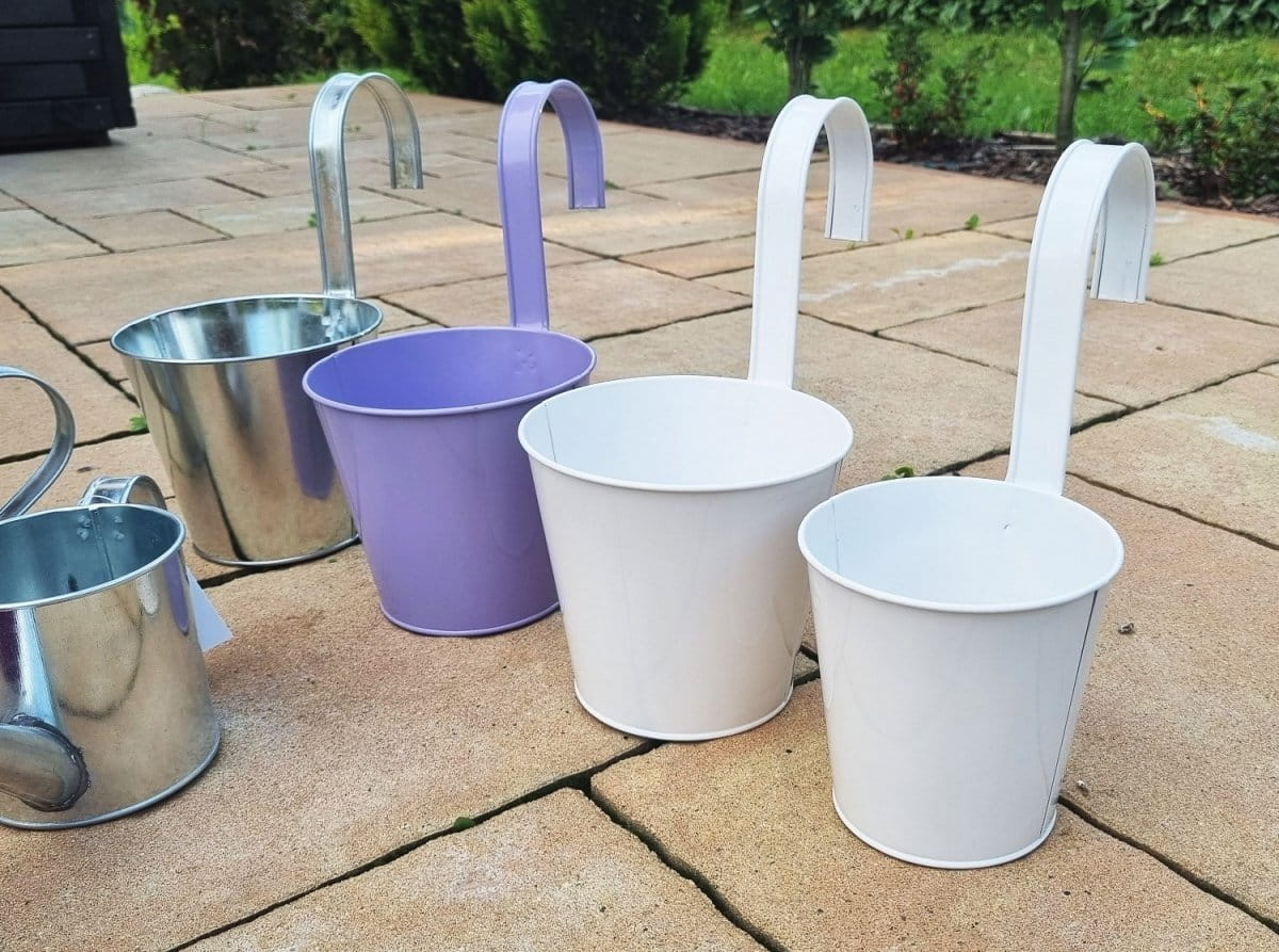 - przedmiotem oferty jest osłonka metalowa wisząca w kształcie wiaderka z uchem o średnicy 16 cm w kolorze lawendowym