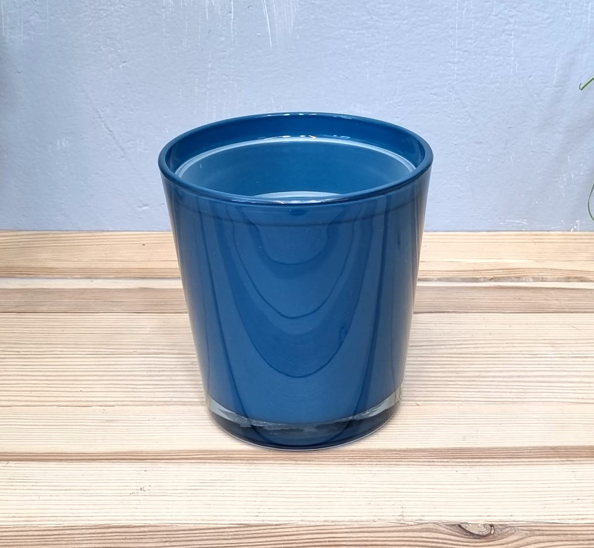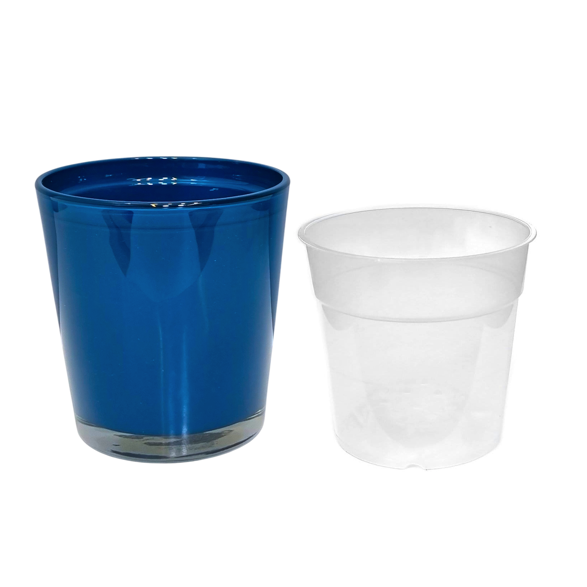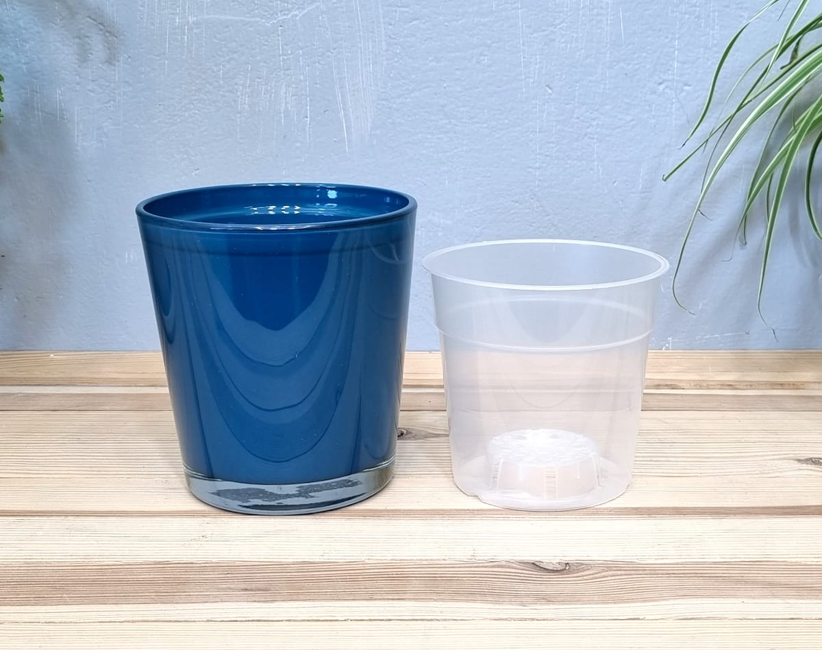 Doniczka CYNTIA 13cm NIEBIESKI PETROL - szklana osłonka na kwiaty z wkładem