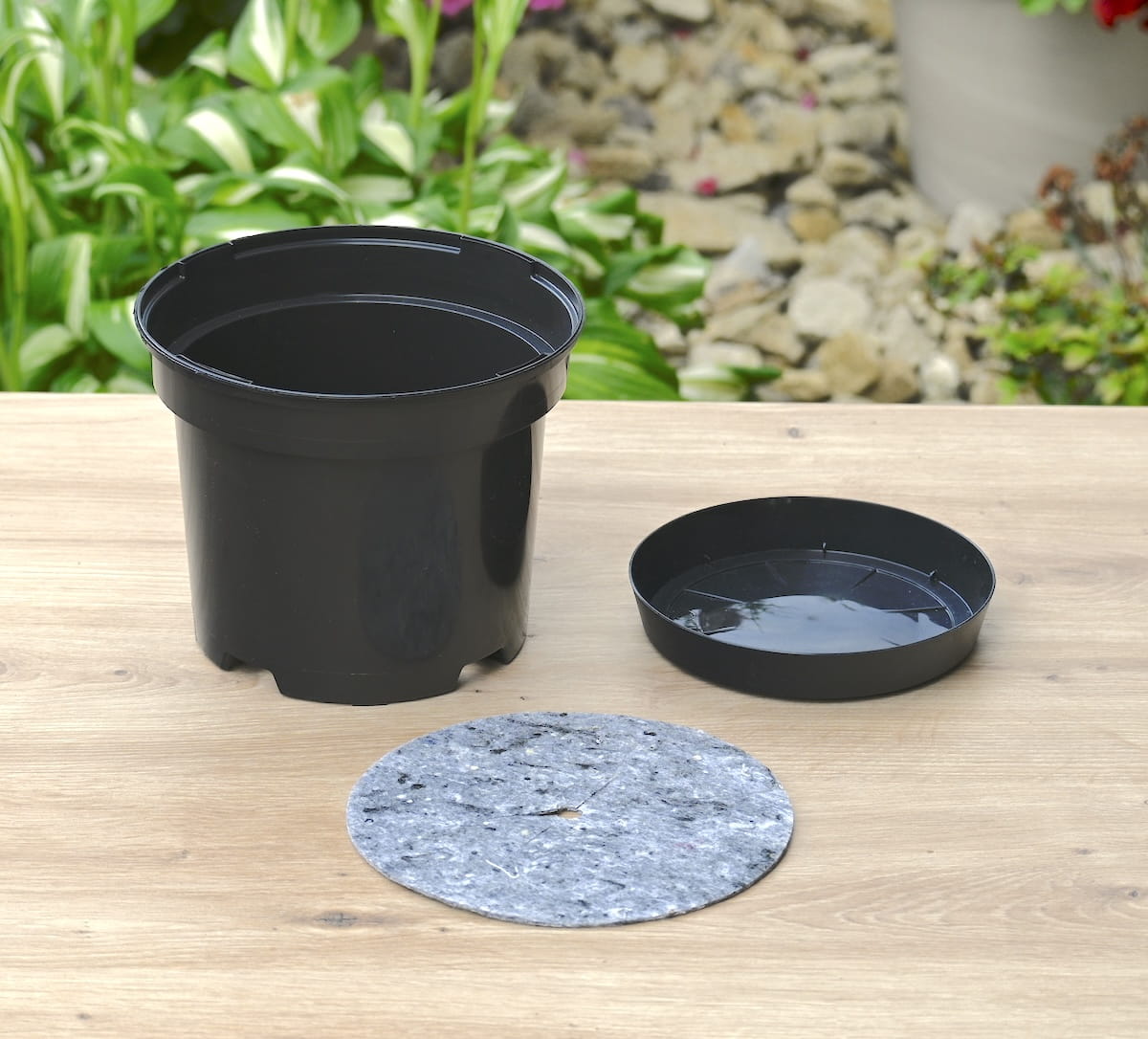 Doniczka produkcyjna z podstawką i ściółką filcową: