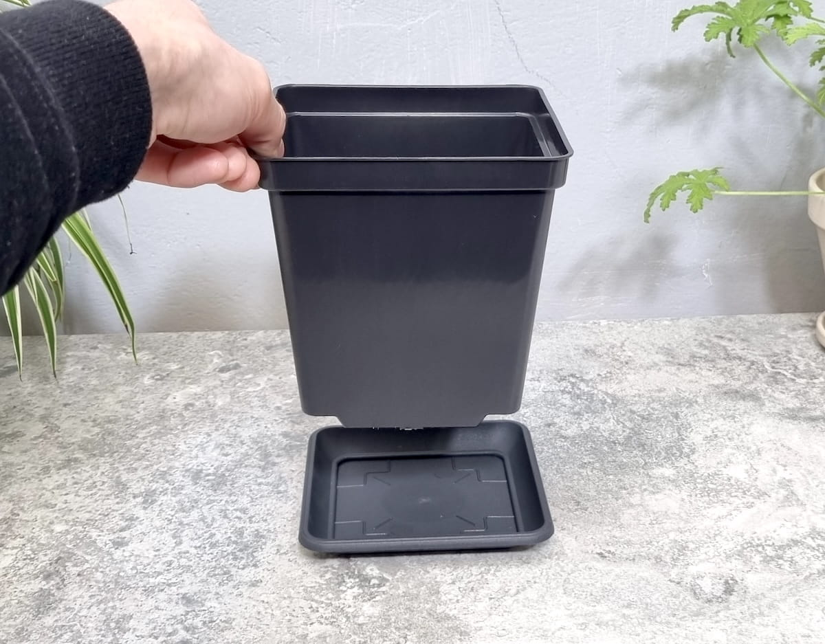 - podstawka skutecznie zbiera nadmiar wody po podlaniu, umożliwiając uprawę w domu, na balkonie lub tarasie
