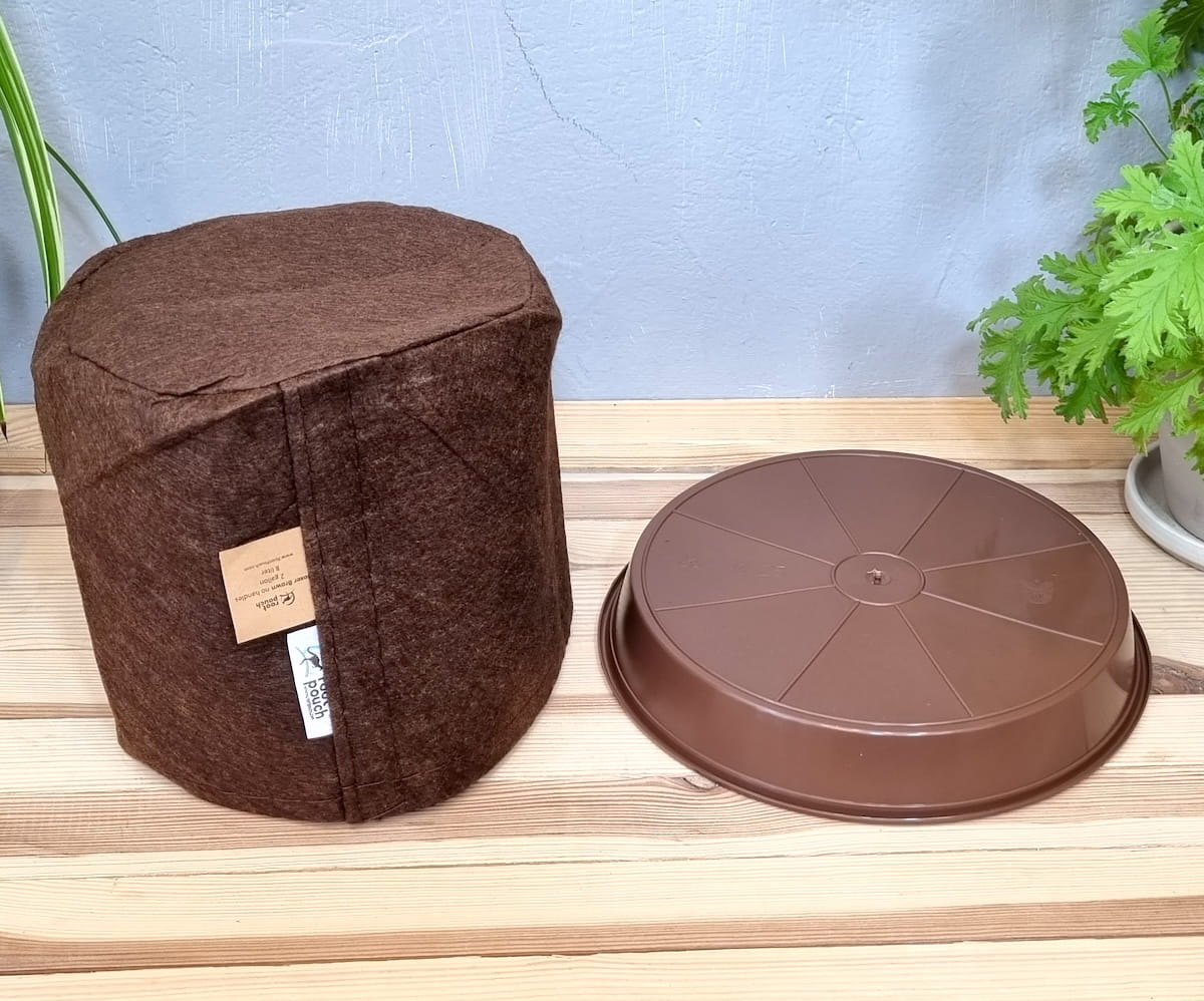 Doniczka filcowa 8L brązowa z podstawką - torba growbag do uprawy roślin
