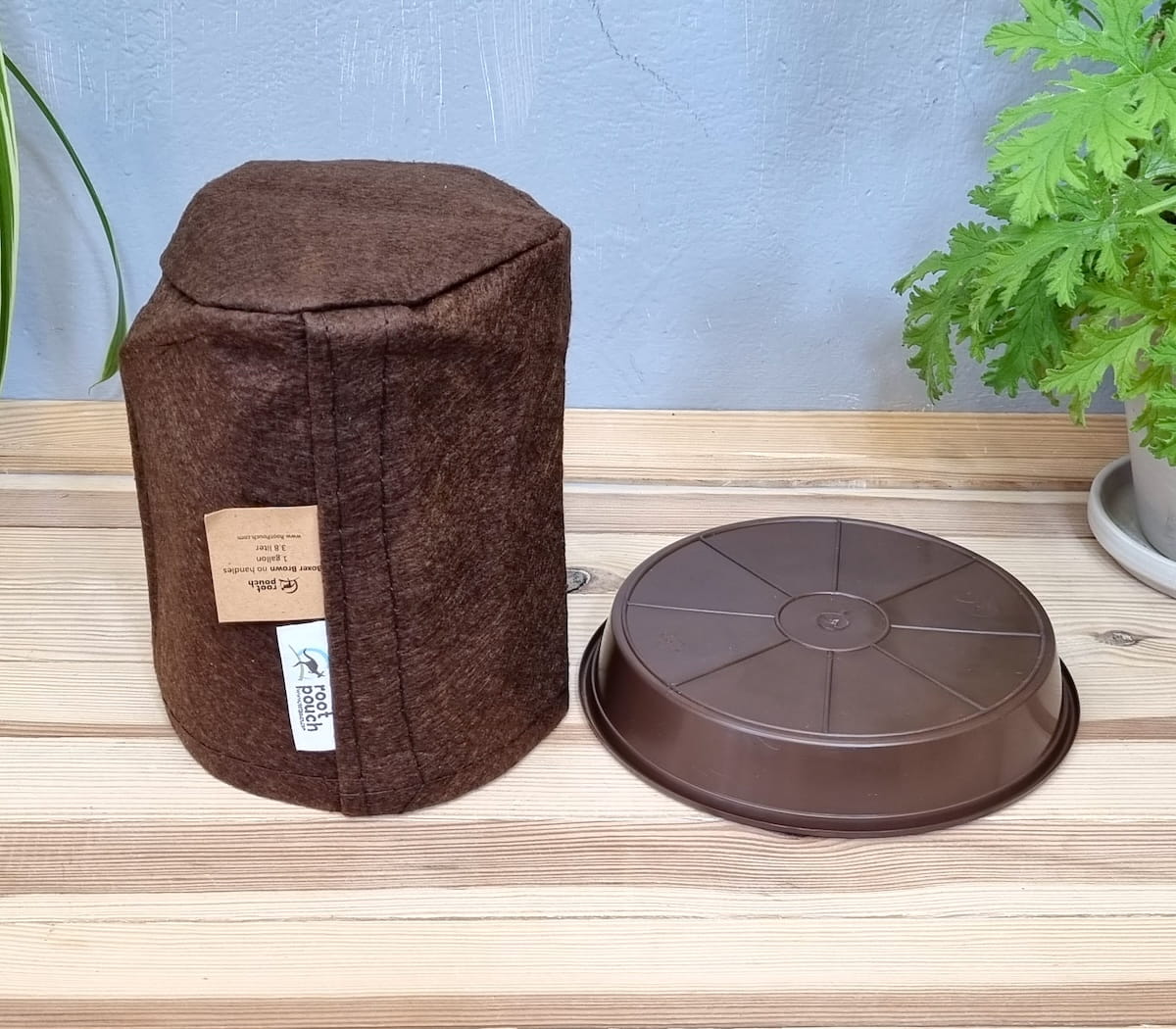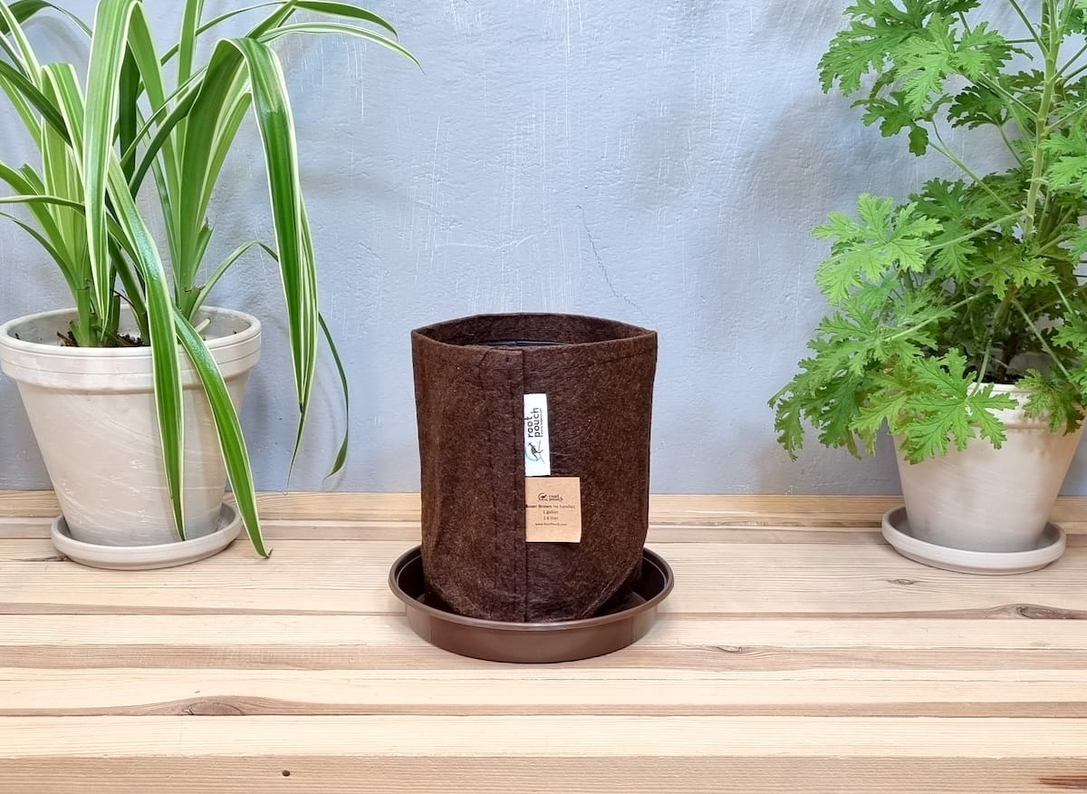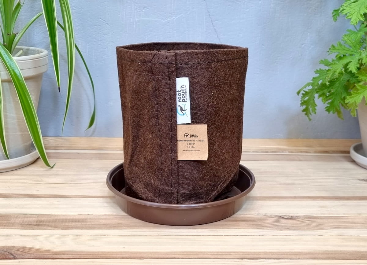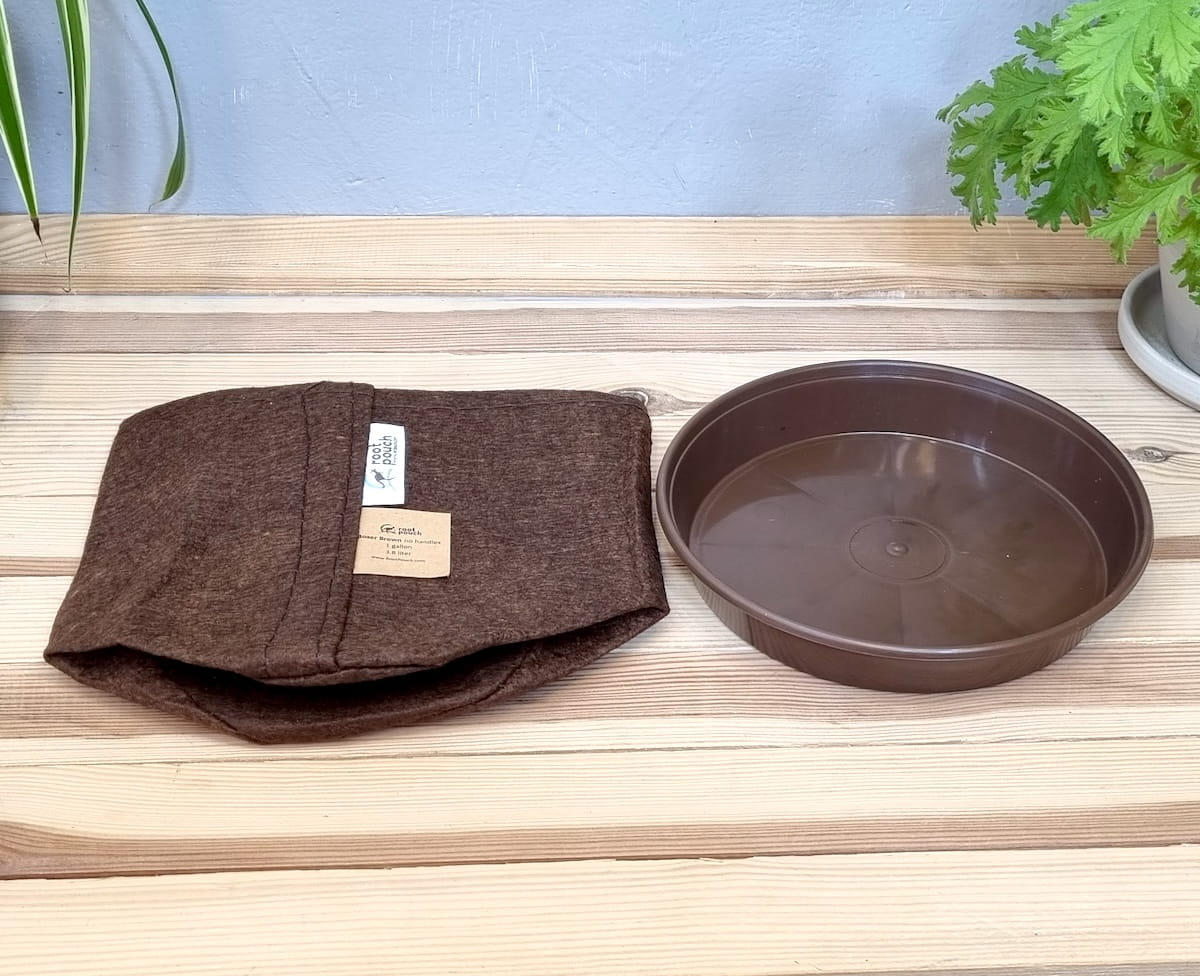 Doniczka filcowa 3,8L brązowa z podstawką - torba growbag do uprawy roślin