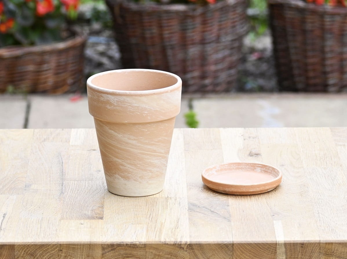 Doniczka gliniana HM PIASEK XL 10cm Z PODSTAWKĄ - mała donica z terakoty