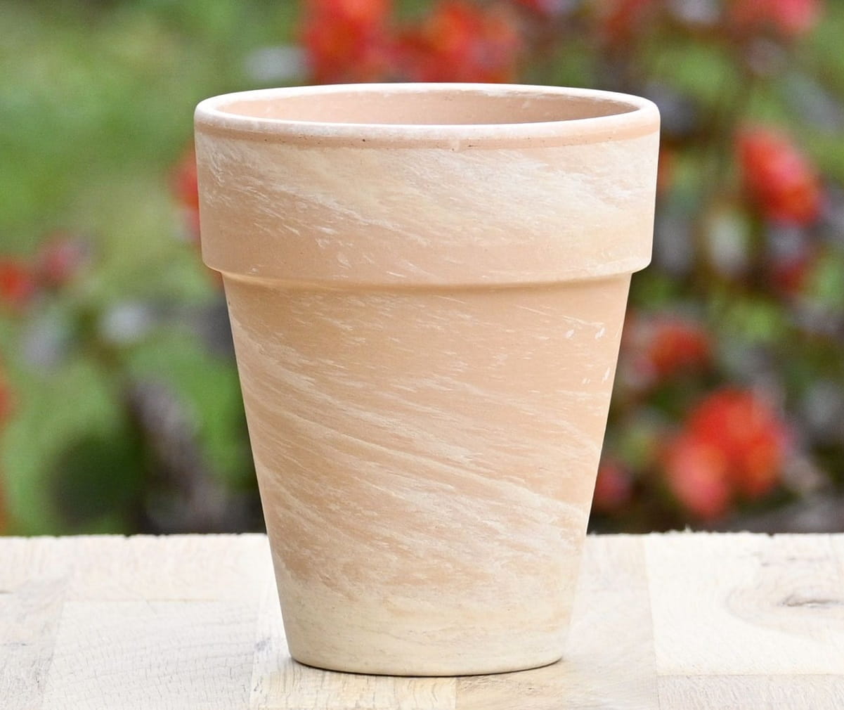 - kolor i powierzchnia nie są jednorodne - zdarzają się naturalne przebarwienia i nierówności, a po podlaniu doniczka robi się wilgotna i nieco ciemniejsza