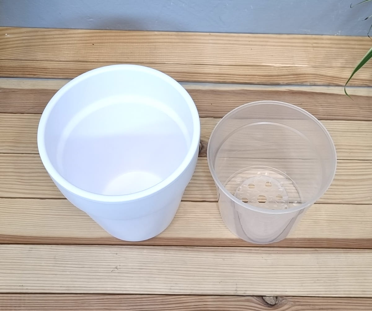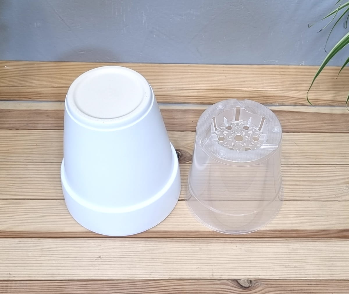 - po włożeniu do osłonki wkład zatrzymuje się kilka centymetrów ponad dnem, zostawiając przestrzeń na wodę - dzięki temu storczyki zawsze mają dużo wilgoci, a jednocześnie ich korzenie nie stoją w wodzie