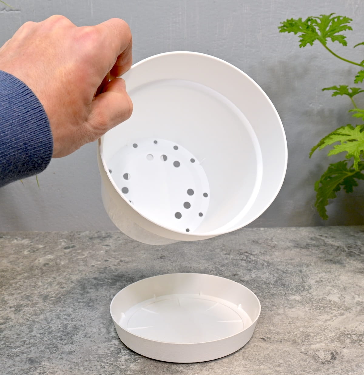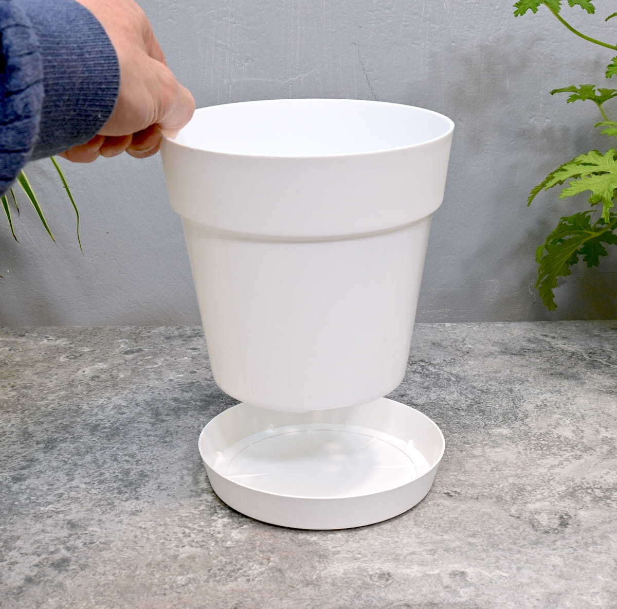 - podstawka skutecznie zbiera nadmiar wody po podlaniu, umożliwiając uprawę w domu, na balkonie lub tarasie