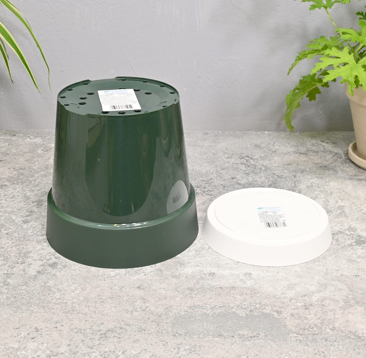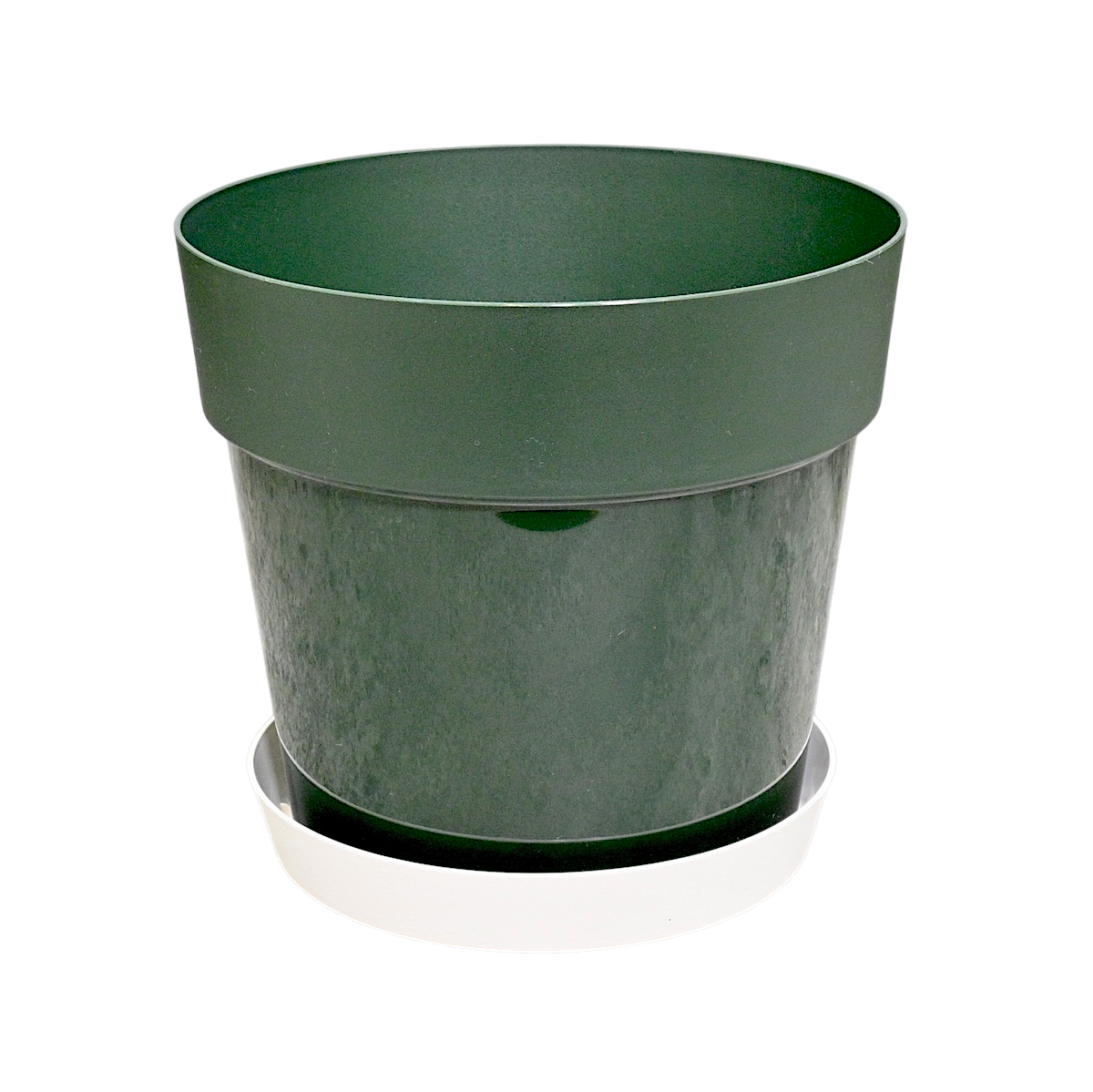 Doniczka plastikowa Grower 18cm 3L zielona leśna z białą podstawką