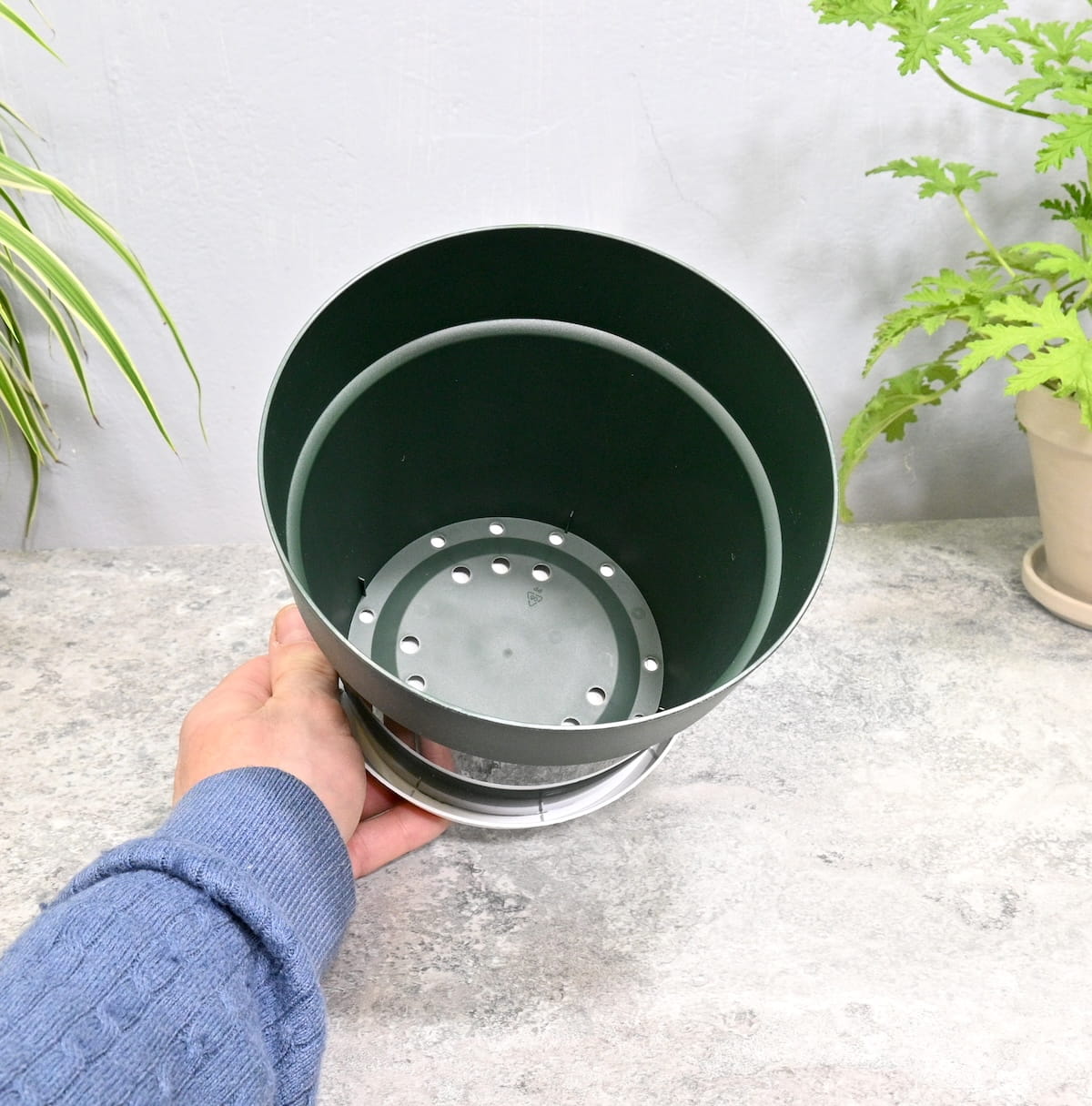 - podstawka skutecznie zbiera nadmiar wody po podlaniu, umożliwiając uprawę w domu, na balkonie lub tarasie