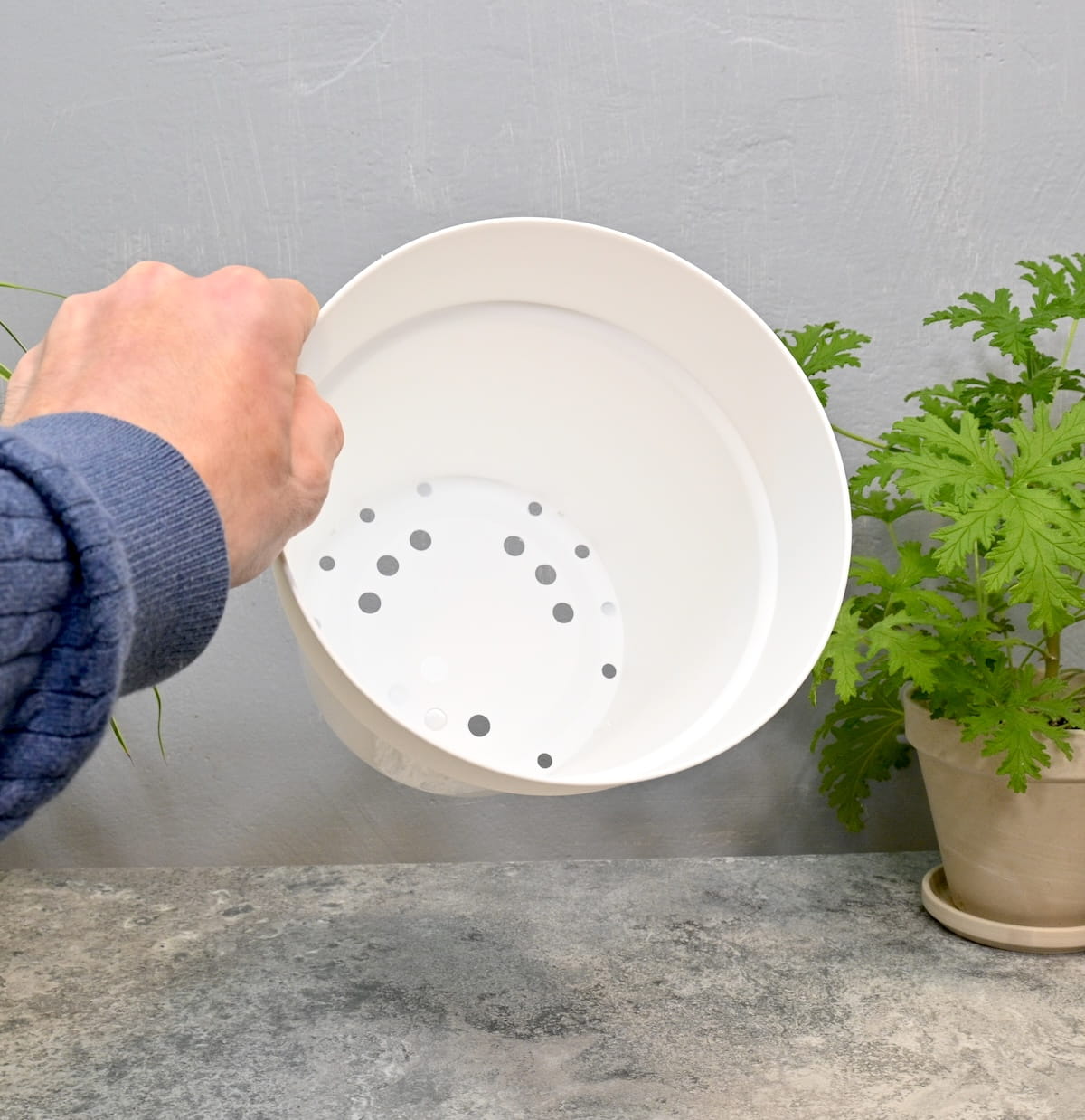 - otwory w dnie zapewniają odpowiedni drenaż
