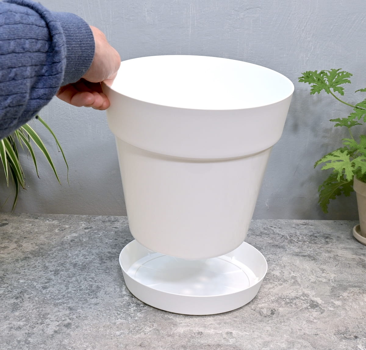 - podstawka skutecznie zbiera nadmiar wody po podlaniu, umożliwiając uprawę w domu, na balkonie lub tarasie