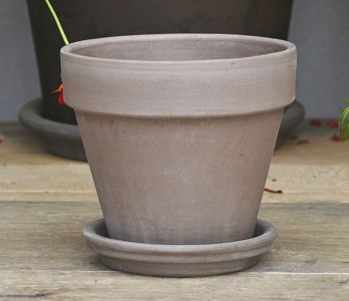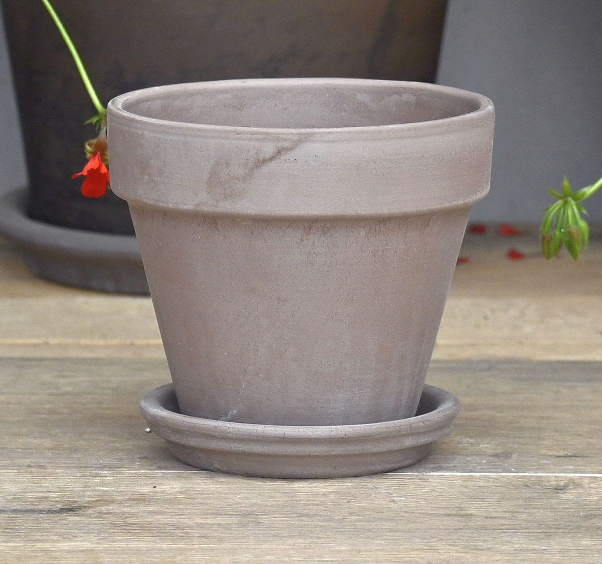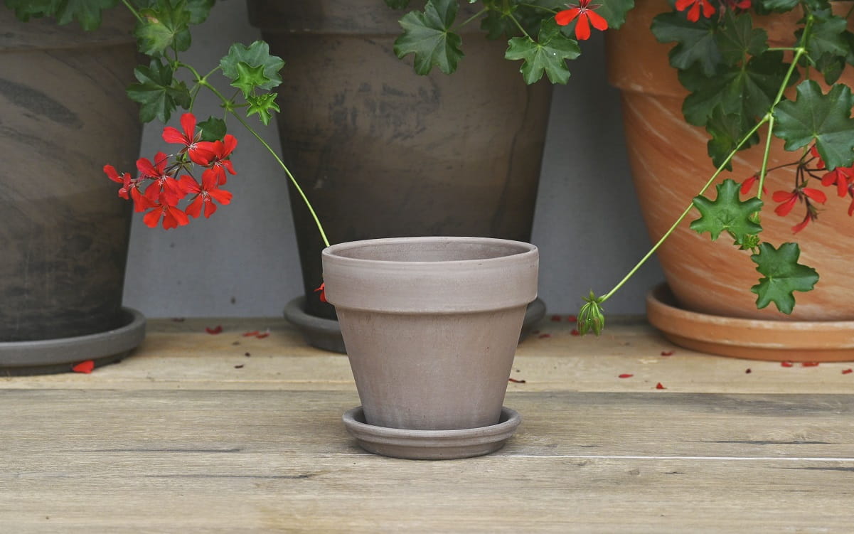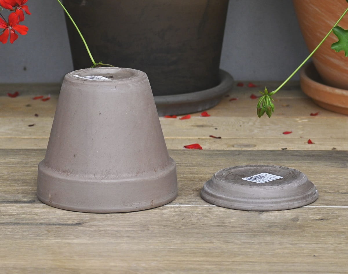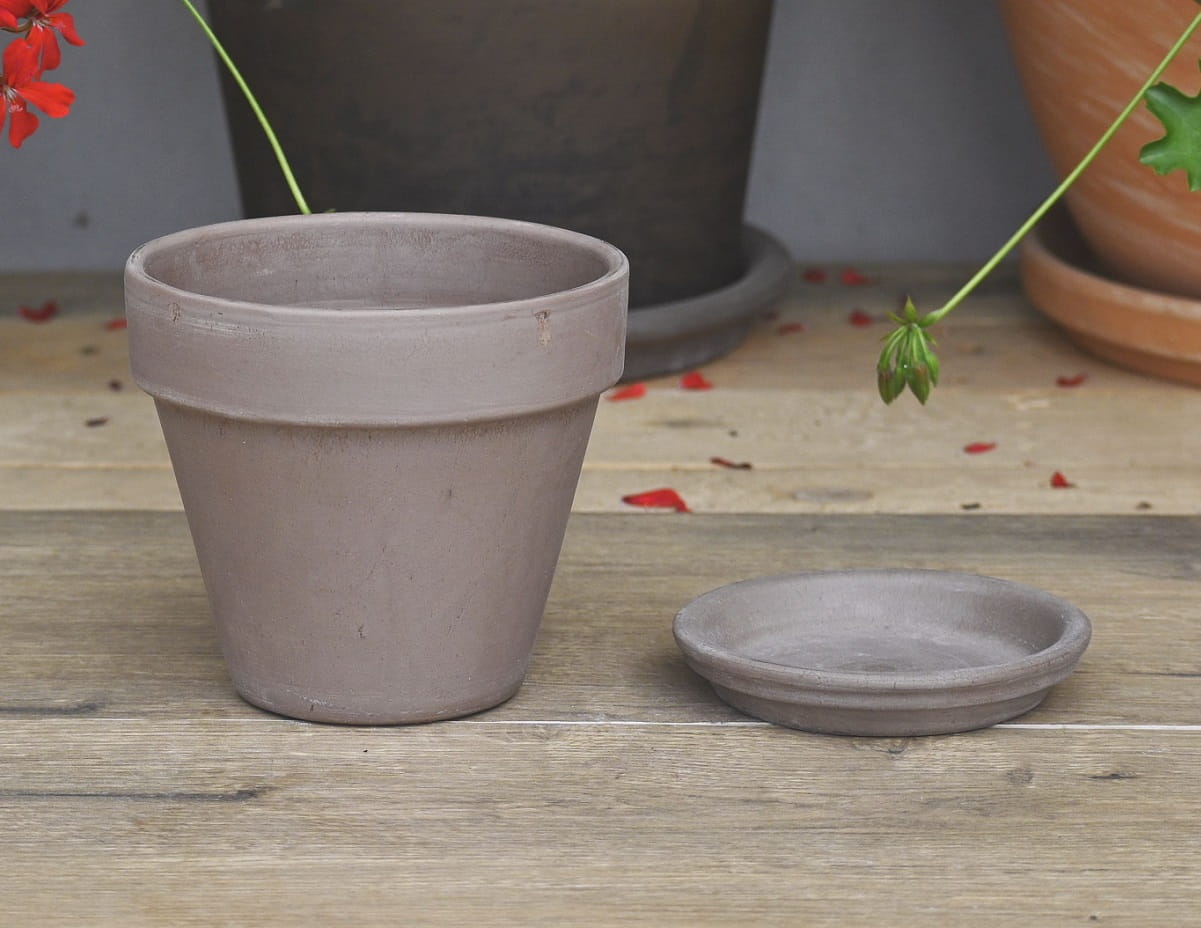 Doniczka gliniana ITA VASO GRAFITE 13cm z PODSTAWKĄ - donica z terakoty