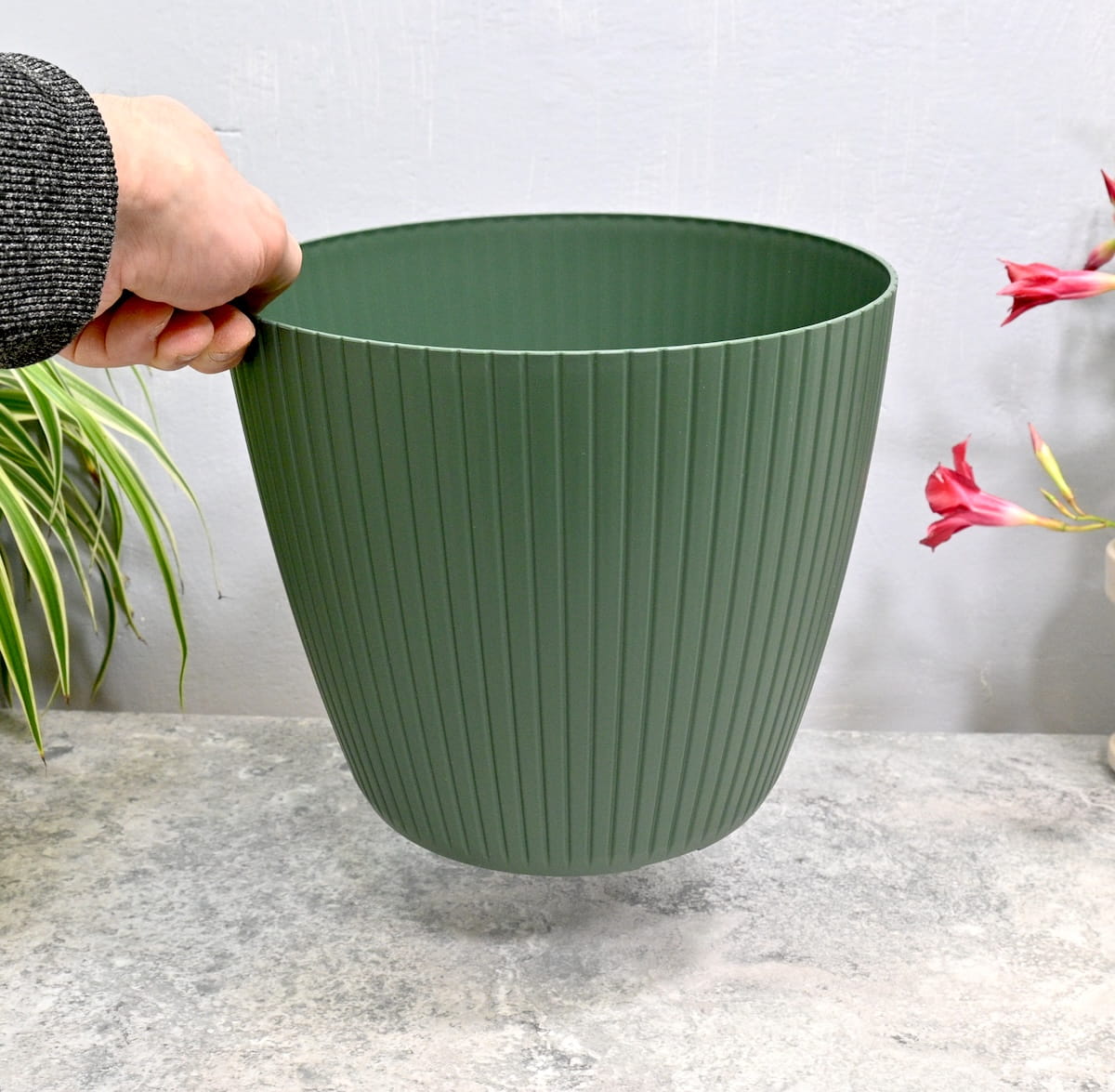 - elegancka doniczko-osłonka ozdobna do wnętrz, na balkony i tarasy