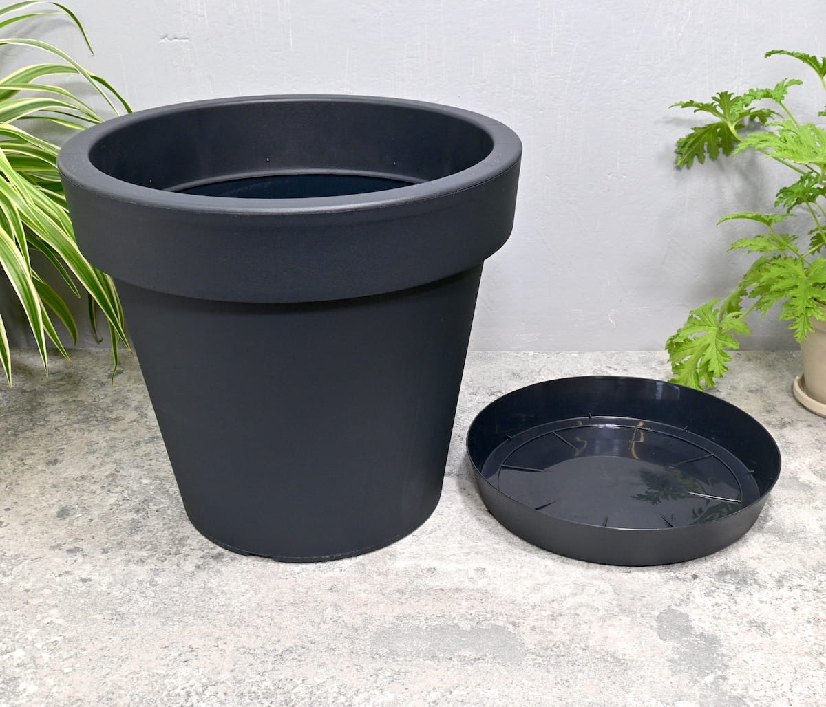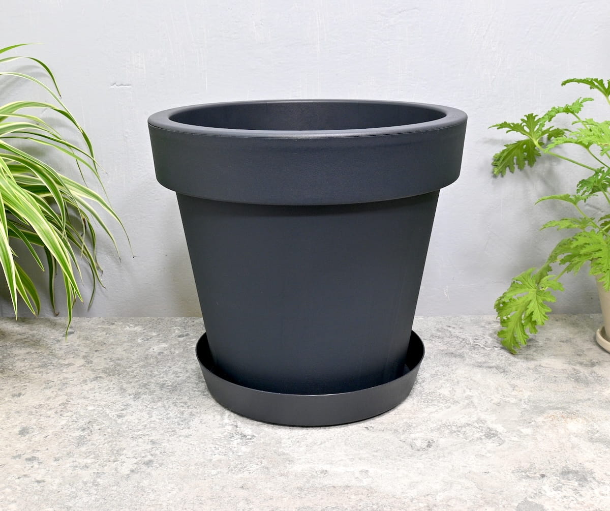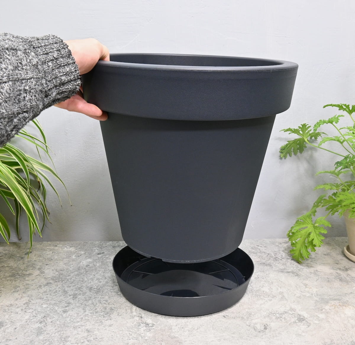 Doniczka Lofly 35cm antracytowa z podstawką - donica do domu i na taras
