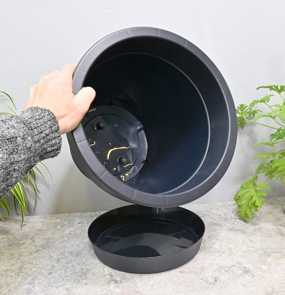 - podstawka skutecznie zbiera nadmiar wody po podlaniu, umożliwiając uprawę w domu, na balkonie lub tarasie