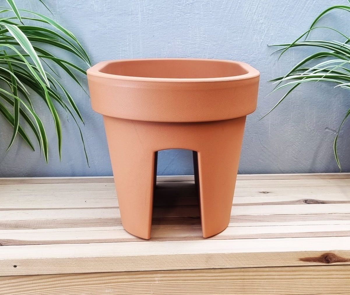 - kształt doniczki i specjalne przetłoczenie umożliwia wygodne nakładanie jej na balustrady