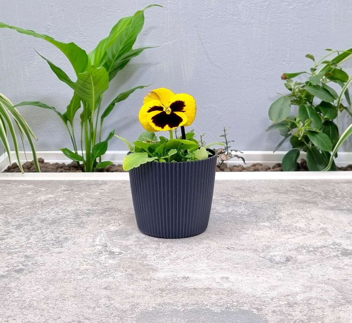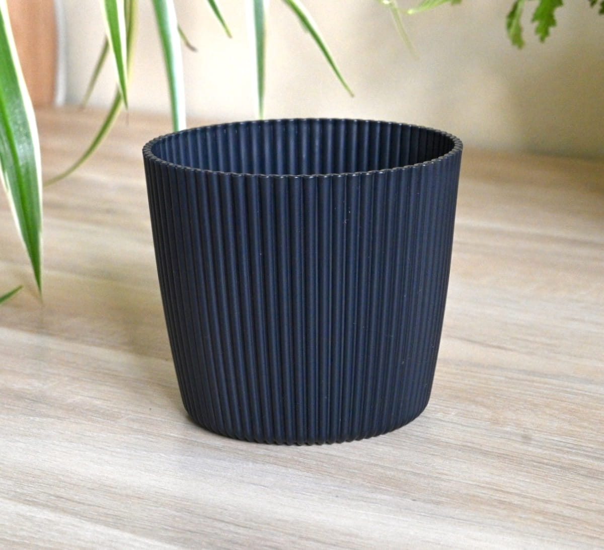 Doniczka Milly Round Prosta 11cm antracytowa - osłonka ozdobna ryflowana