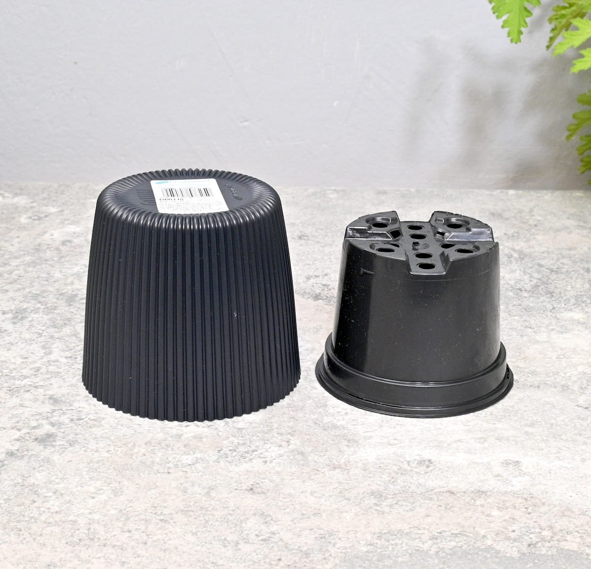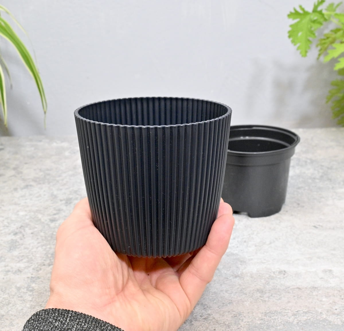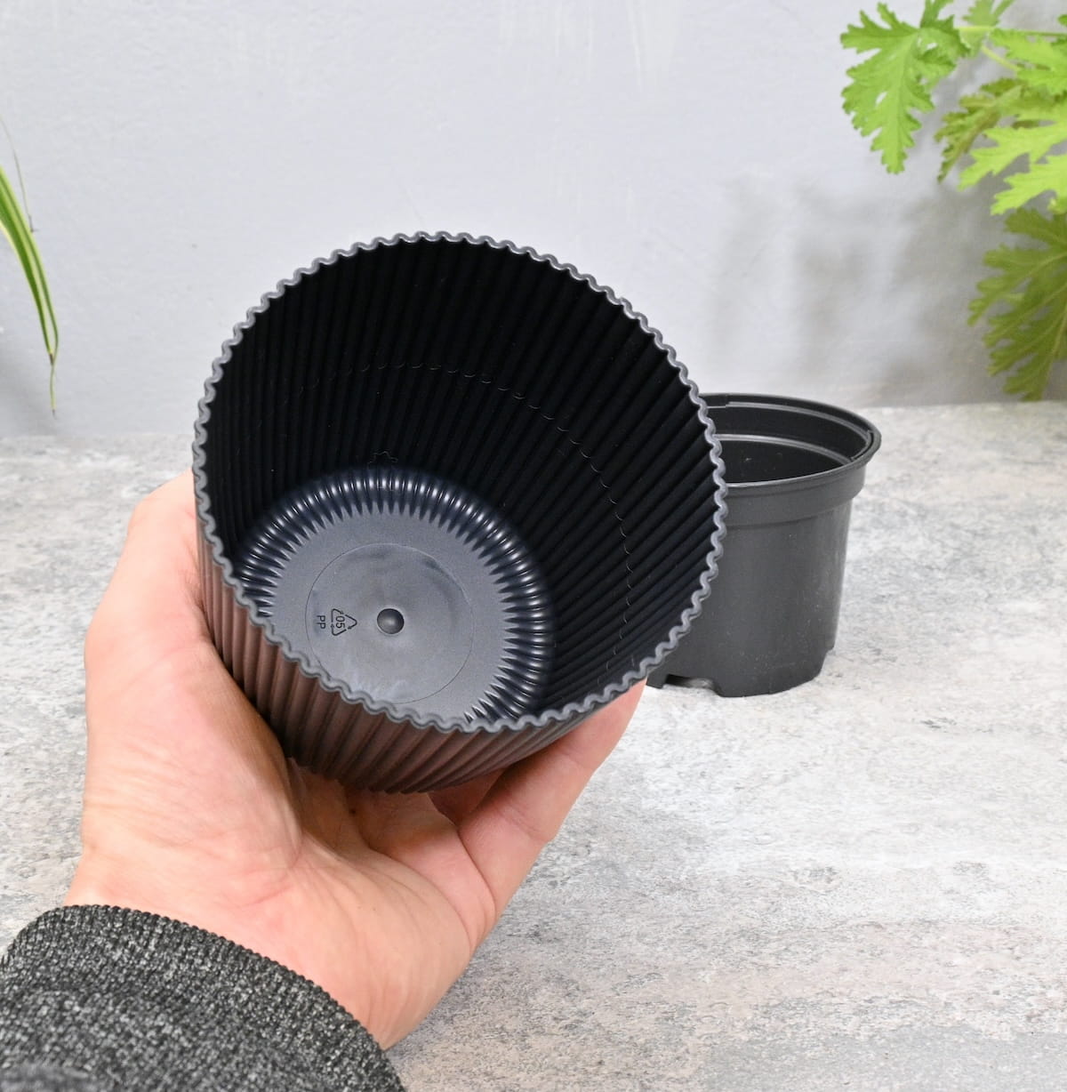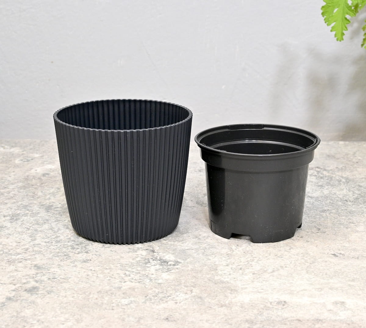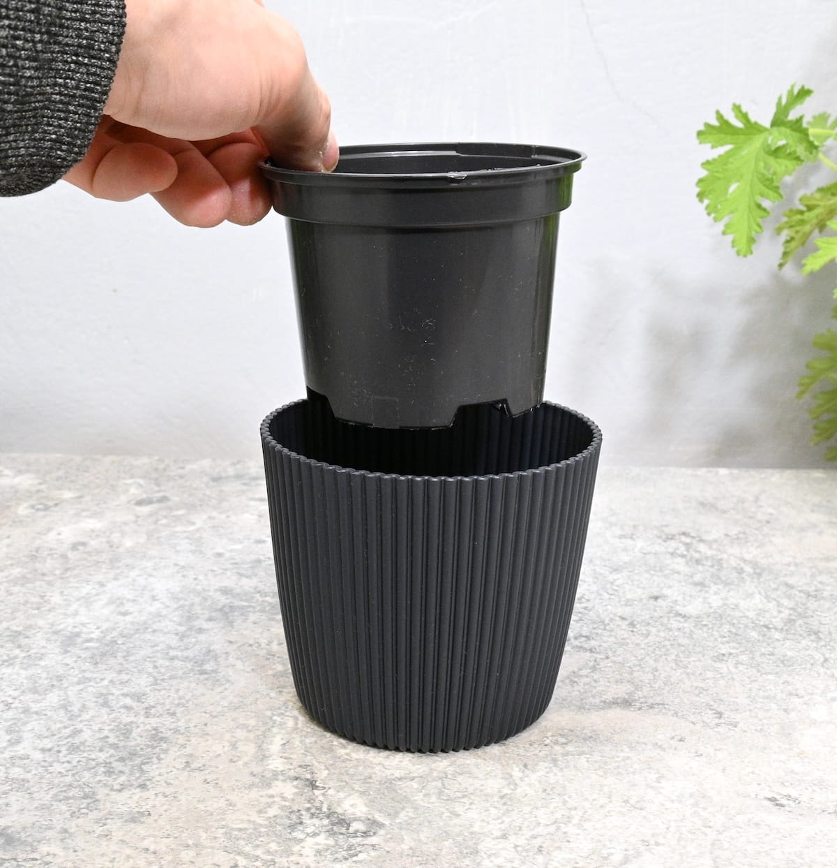 Doniczka Milly Round Prosta 11cm antracytowa - osłonka z wkładem uprawowym