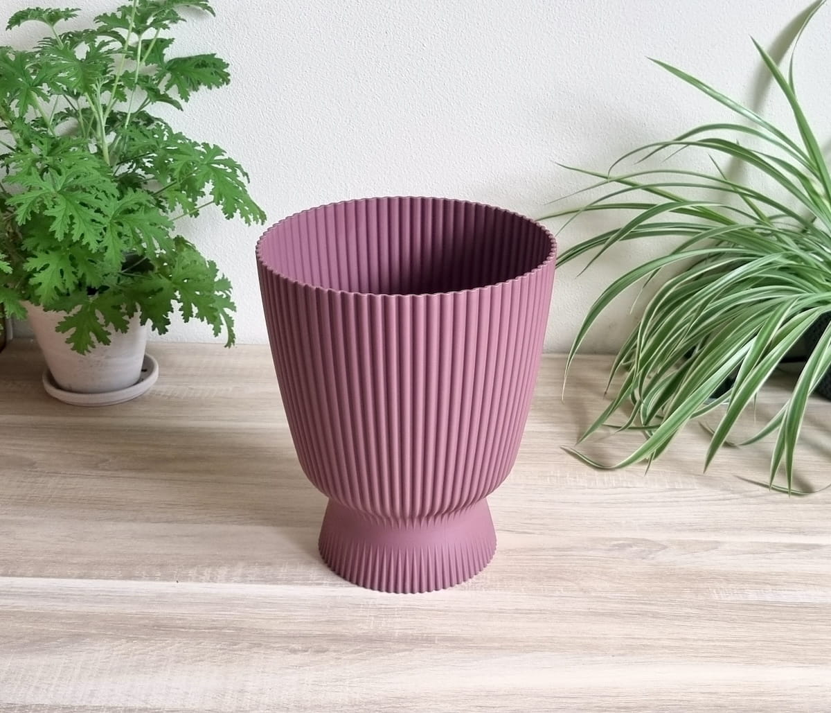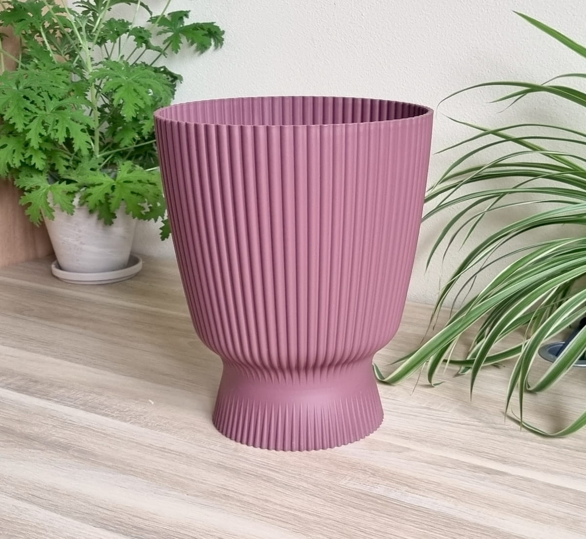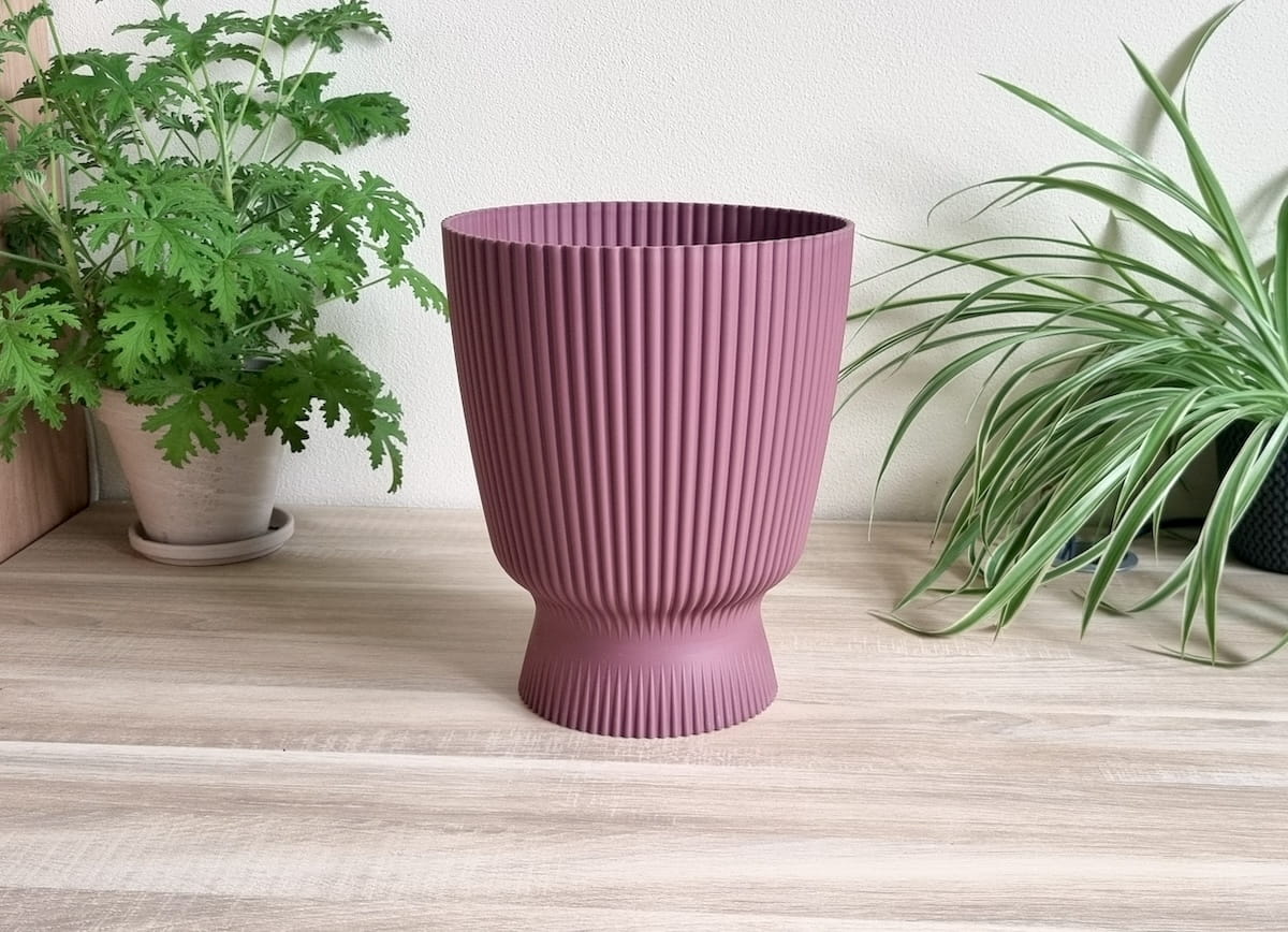 - elegancka doniczko-osłonka z efektownym ryflowaniem, przypominająca kształtem kielich lub wazon