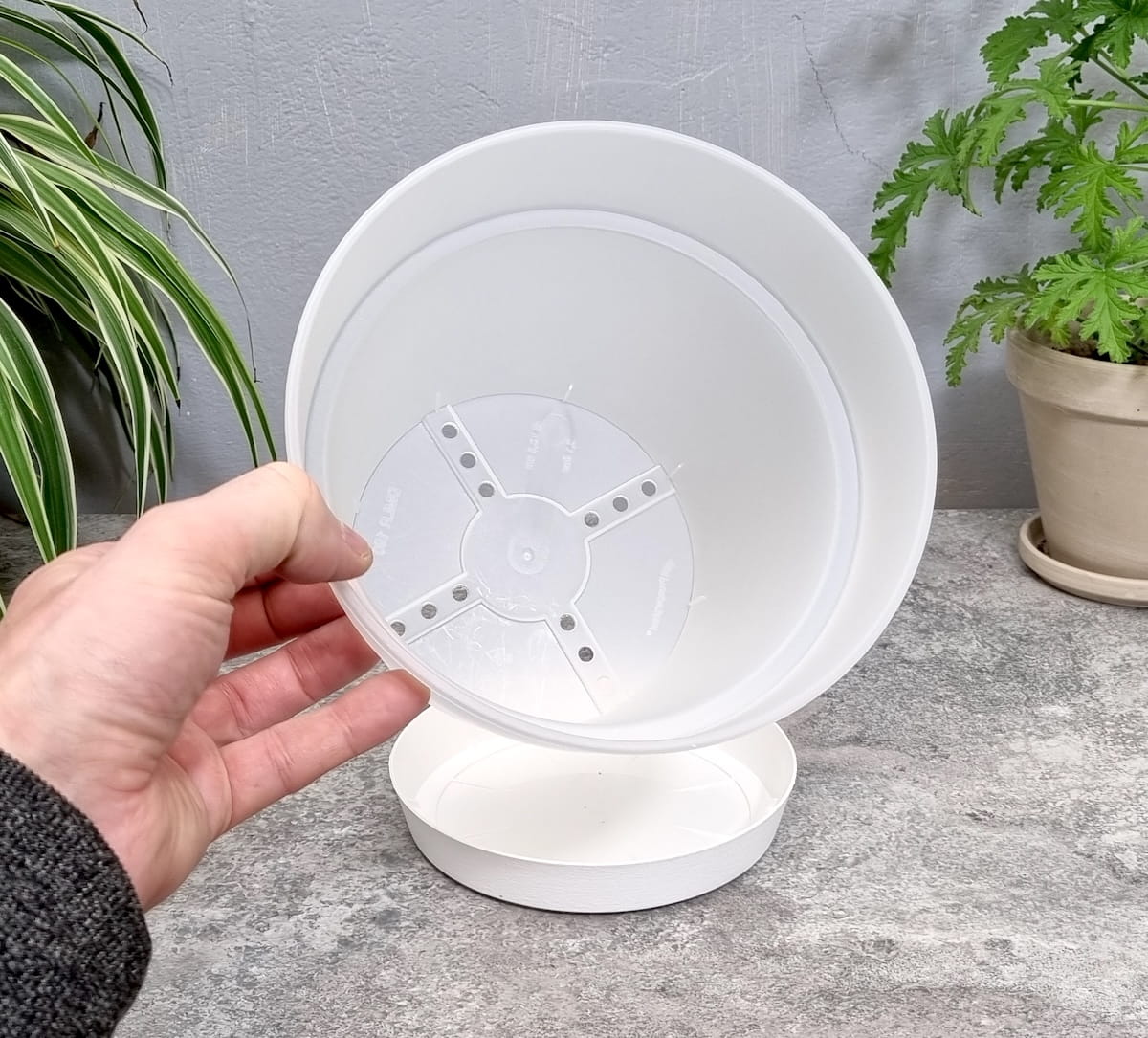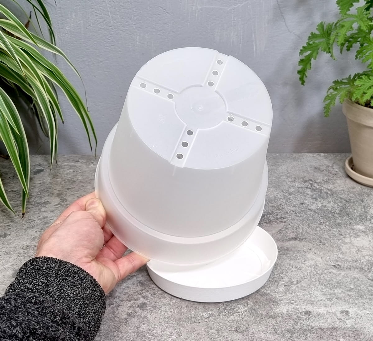 - podstawka skutecznie zbiera nadmiar wody po podlaniu, umożliwiając uprawę w domu, na balkonie lub tarasie