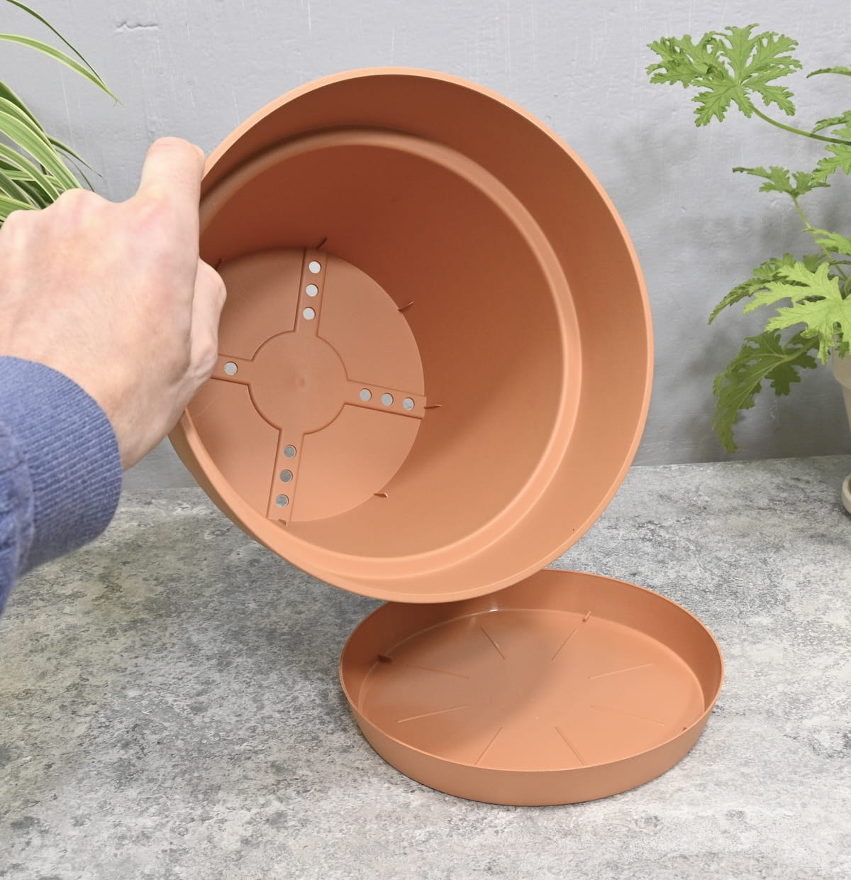 - podstawka jest dobrze dopasowana, zbiera nadmiar wody po podlaniu umożliwiając uprawę w domu, na balkonie lub tarasie
