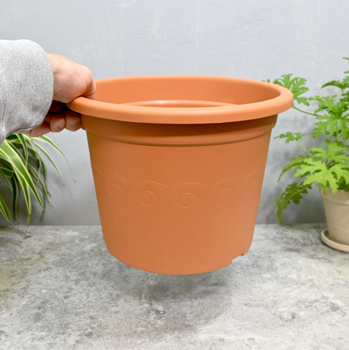 - klasyczna donica ozdobna wiernie imitująca terakotę