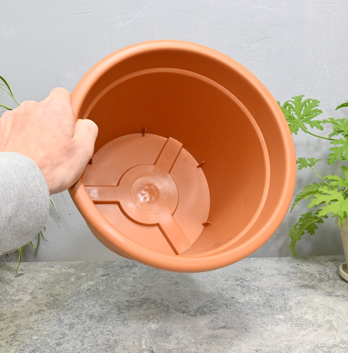 - doniczka ma pełne dno oraz miejsca pozostawione na wykonanie otworów drenażowych