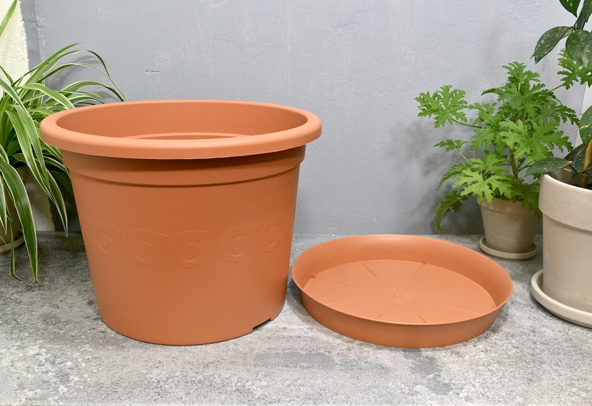 Doniczka Plastica 40cm 21L Terakota z podstawką - duża donica na choinkę