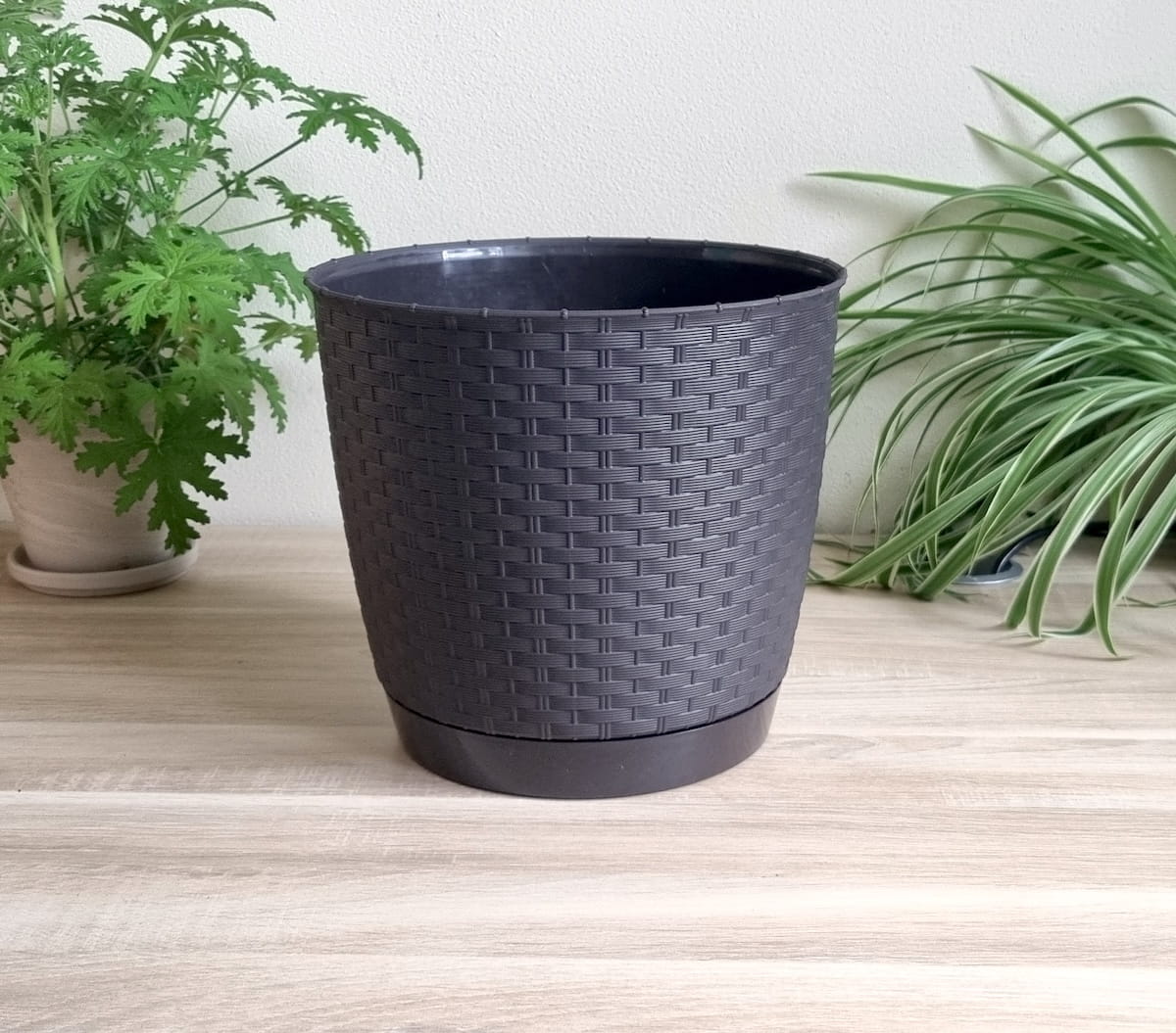 - doniczka wykonana z wysokiej jakości technorattanu
