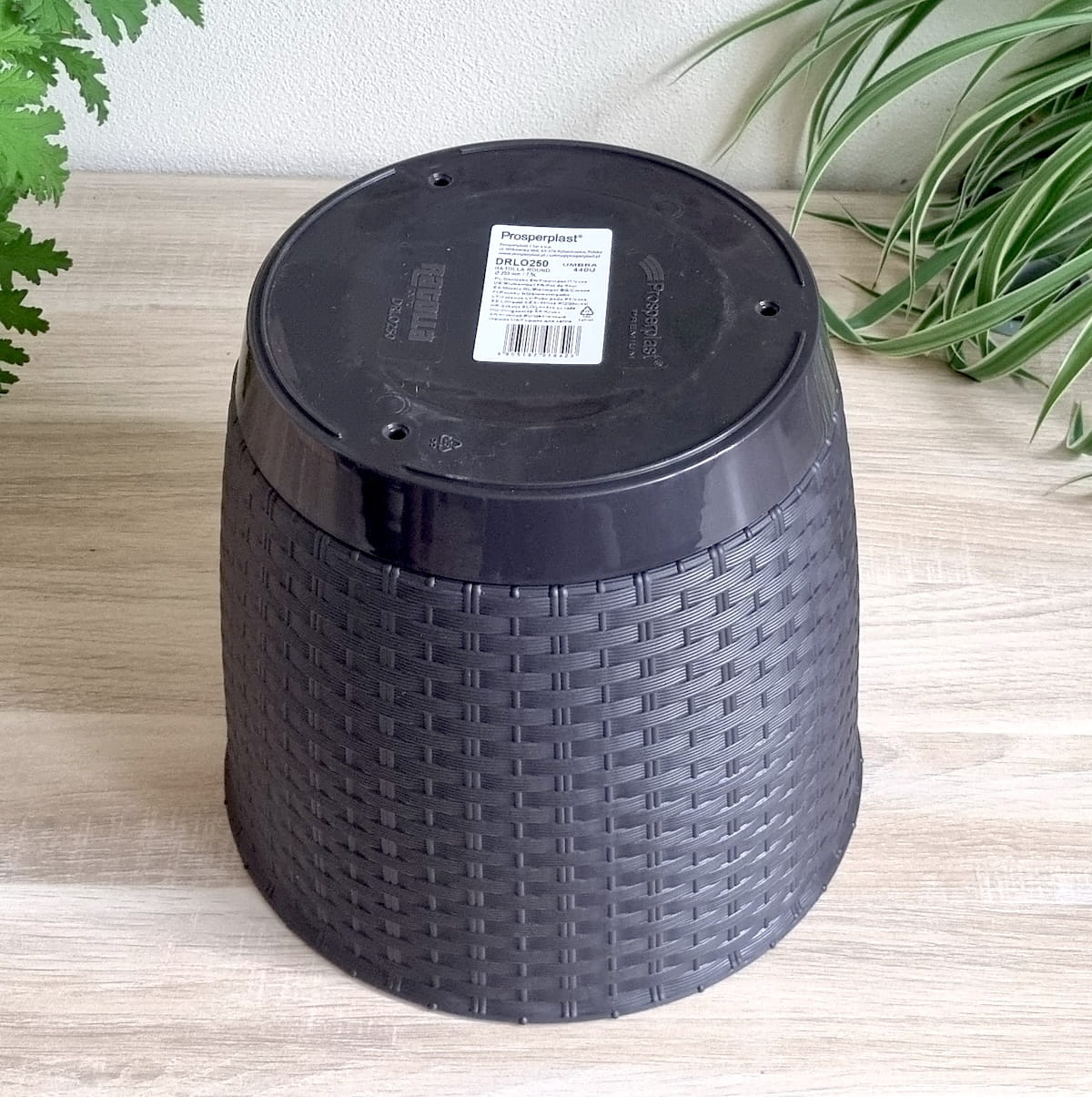 oniczka z technorattanu Ratolla Round 25cm brąz umbra - donica z podstawką