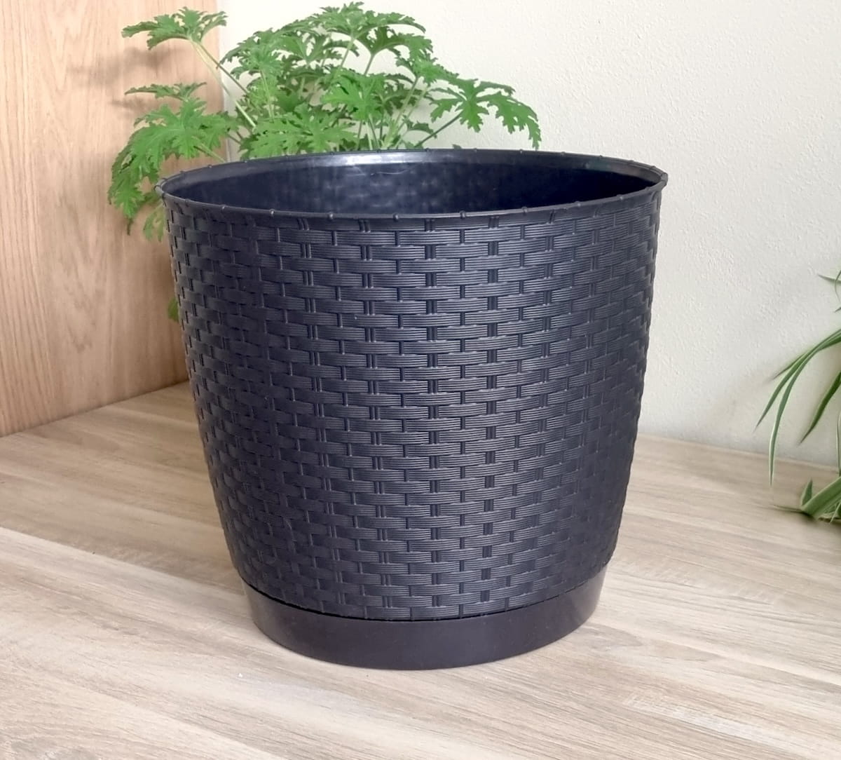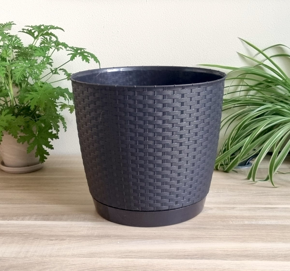 Doniczka z technorattanu Ratolla Round 30cm brąz umbra - donica z podstawką