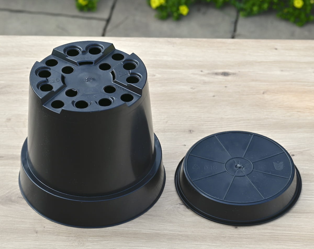 Doniczka produkcyjna szkółkarska 5L 22cm OK z wysokim rantem + podstawka