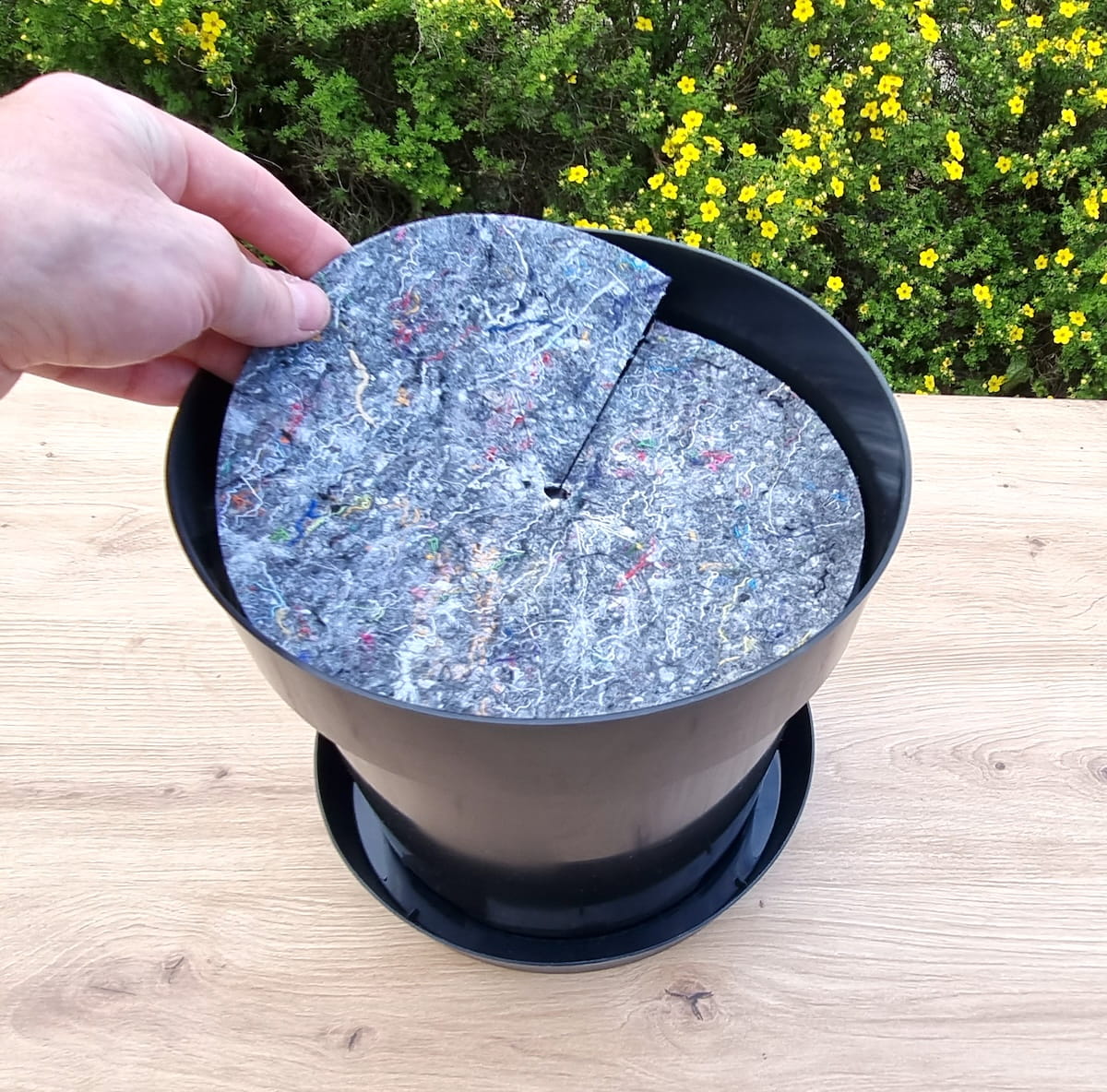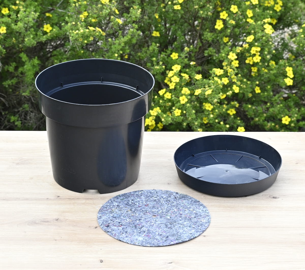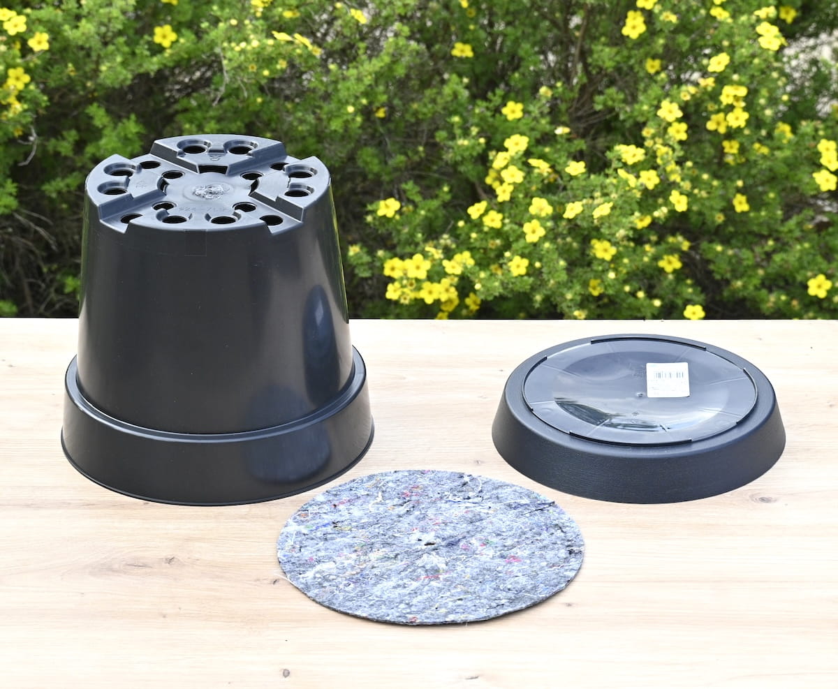Doniczka szkółkarska DonKwiat RW7 z podstawką i ściółką filcową: