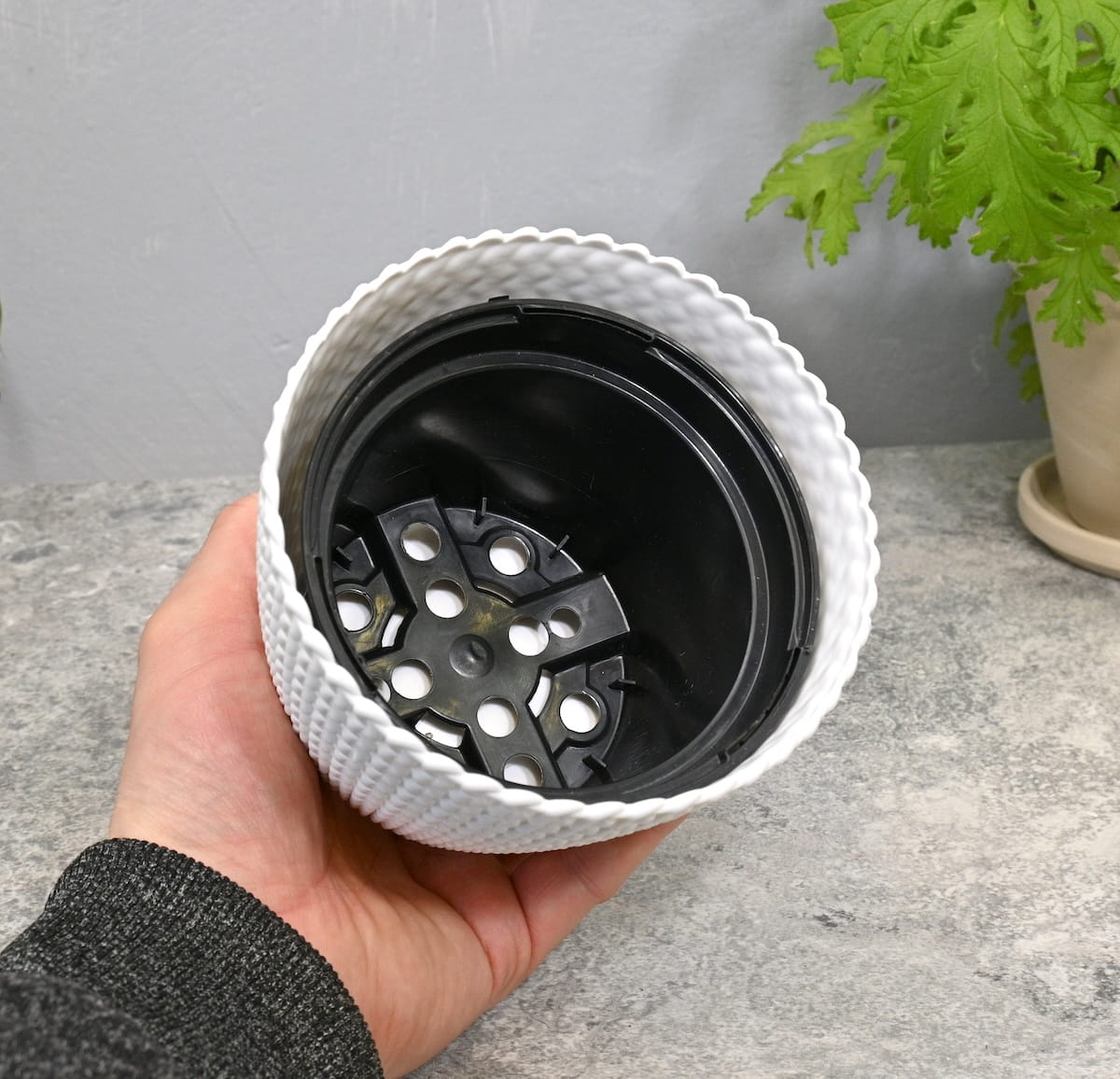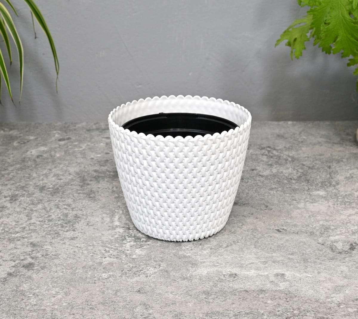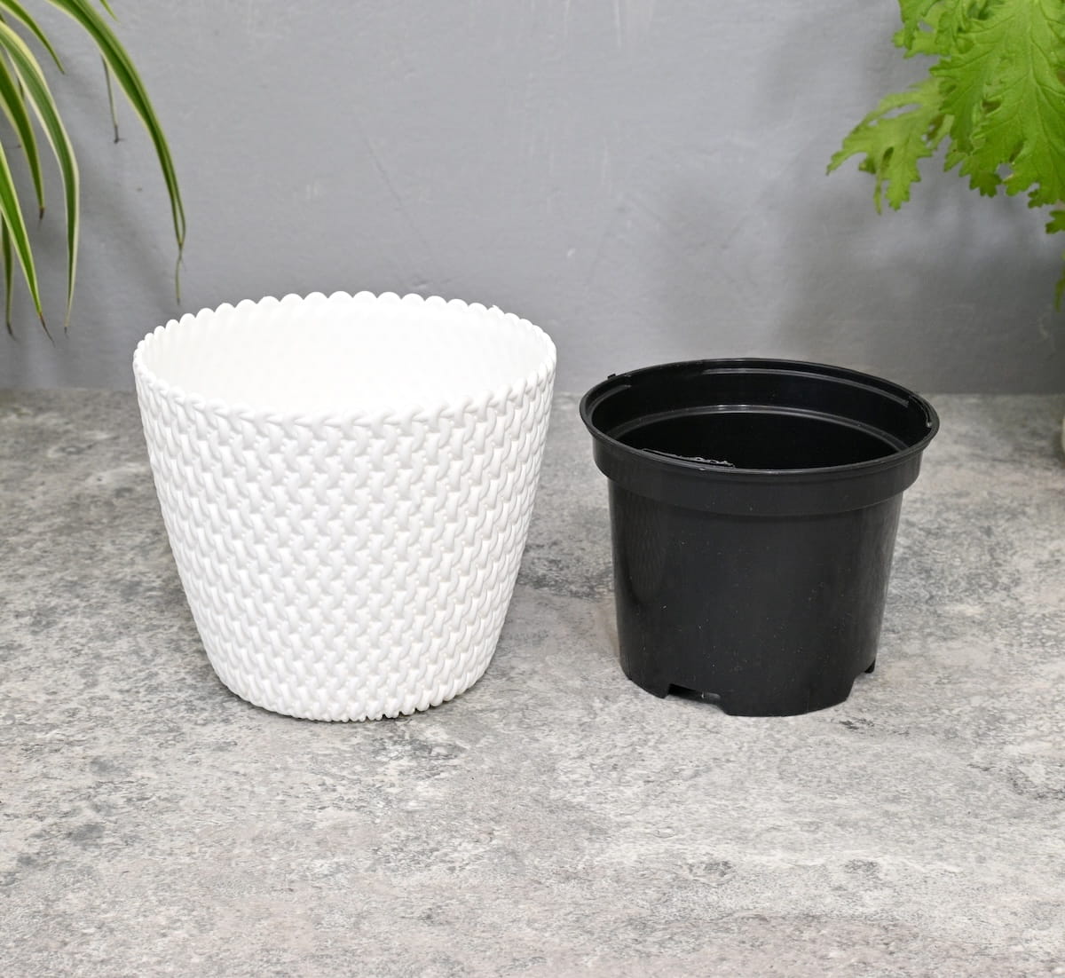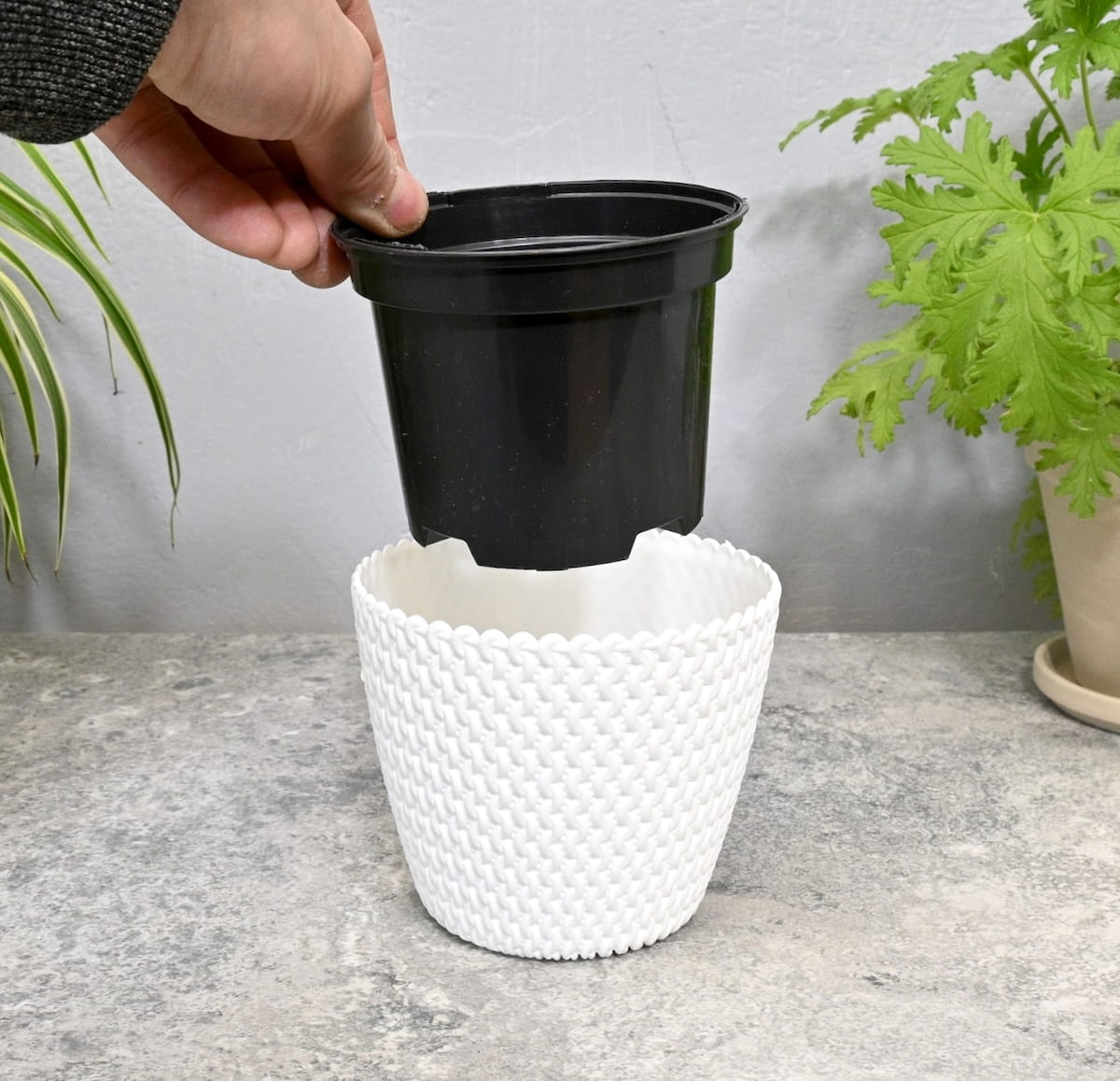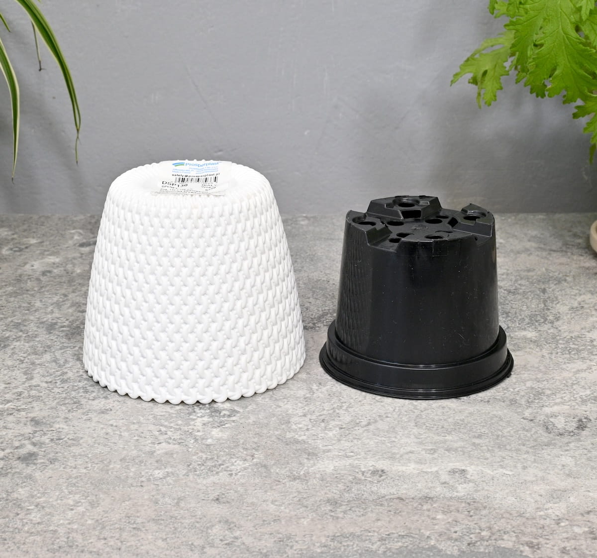 Doniczka Splofy 13cm biała - stylowa osłonka z wkładem do uprawy kwiatów