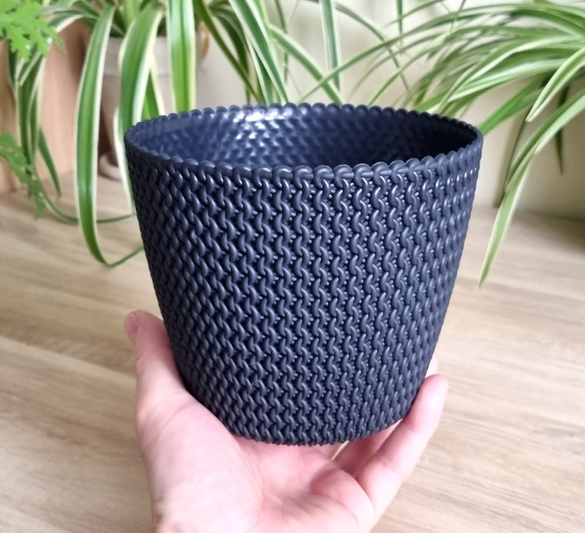 Doniczka Splofy 16cm antracytowa, imitacja wełny - osłonka na kwiaty domowe