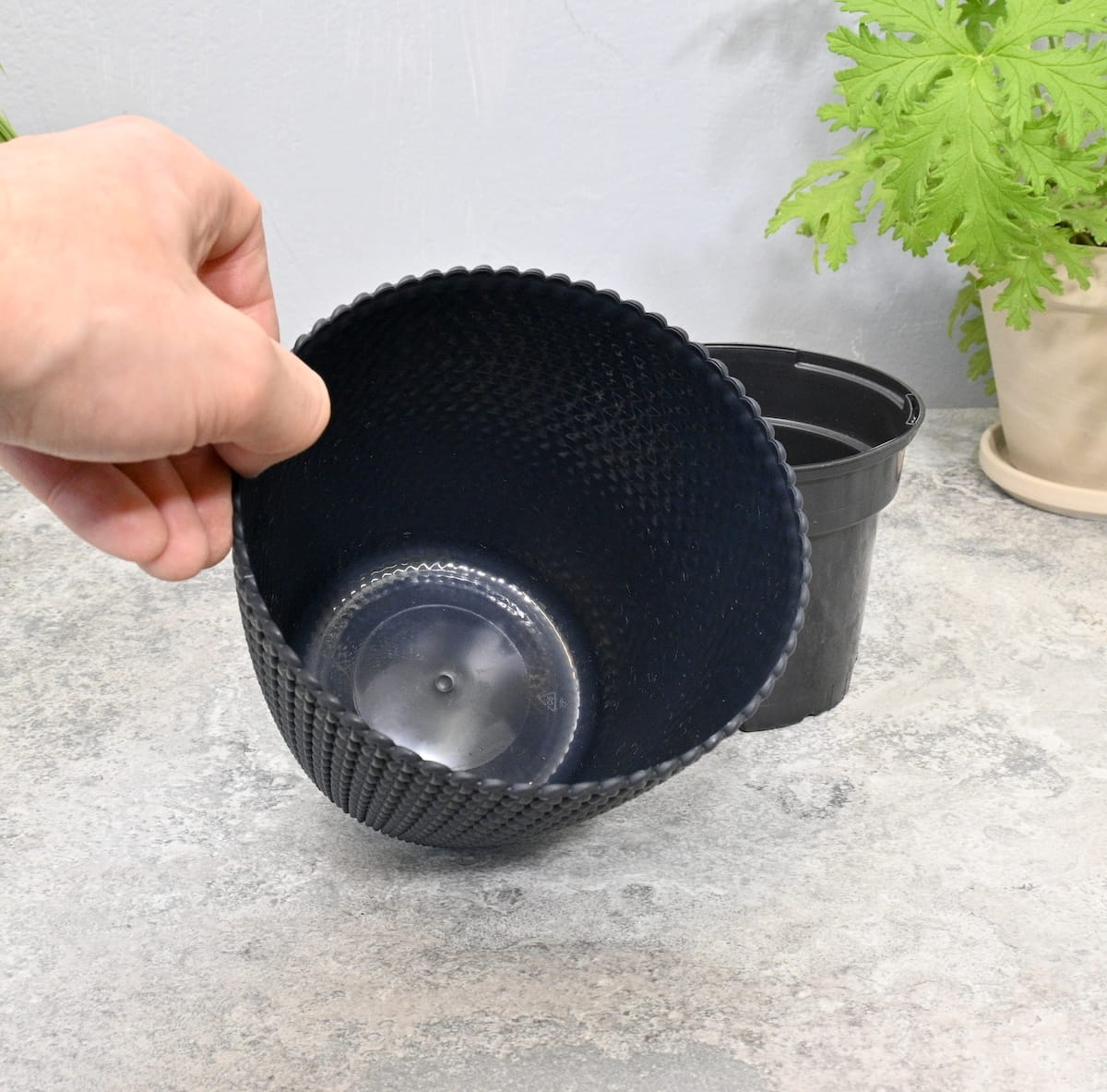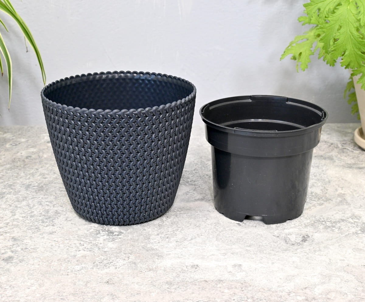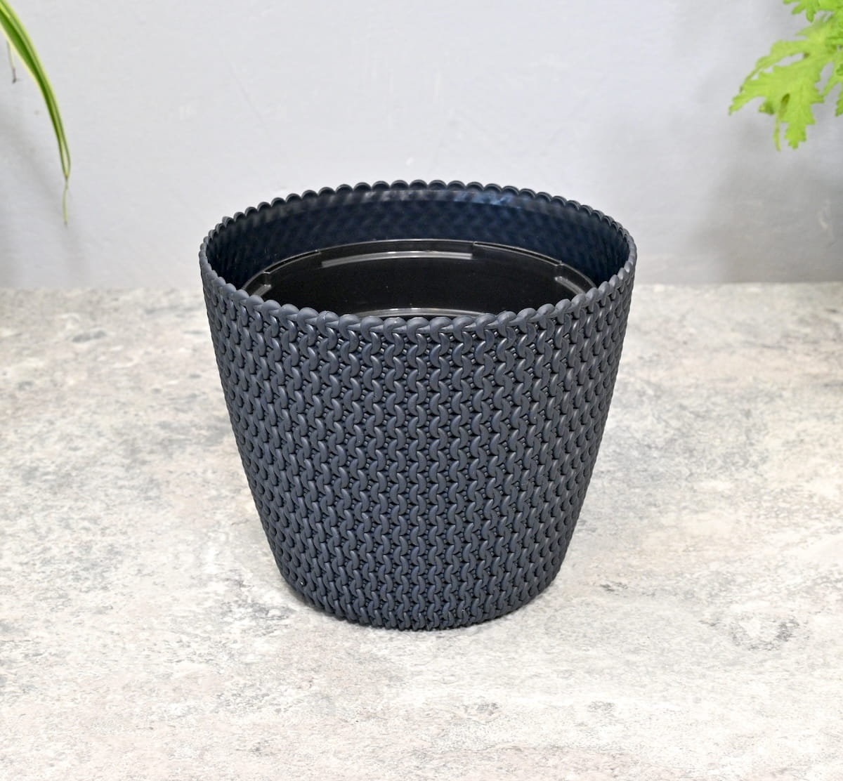 Doniczka Splofy 16cm antracytowa - osłonka z wkładem do uprawy kwiatów