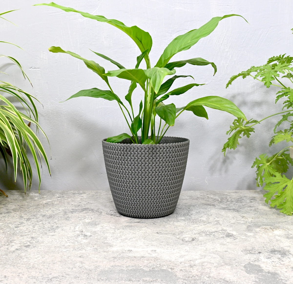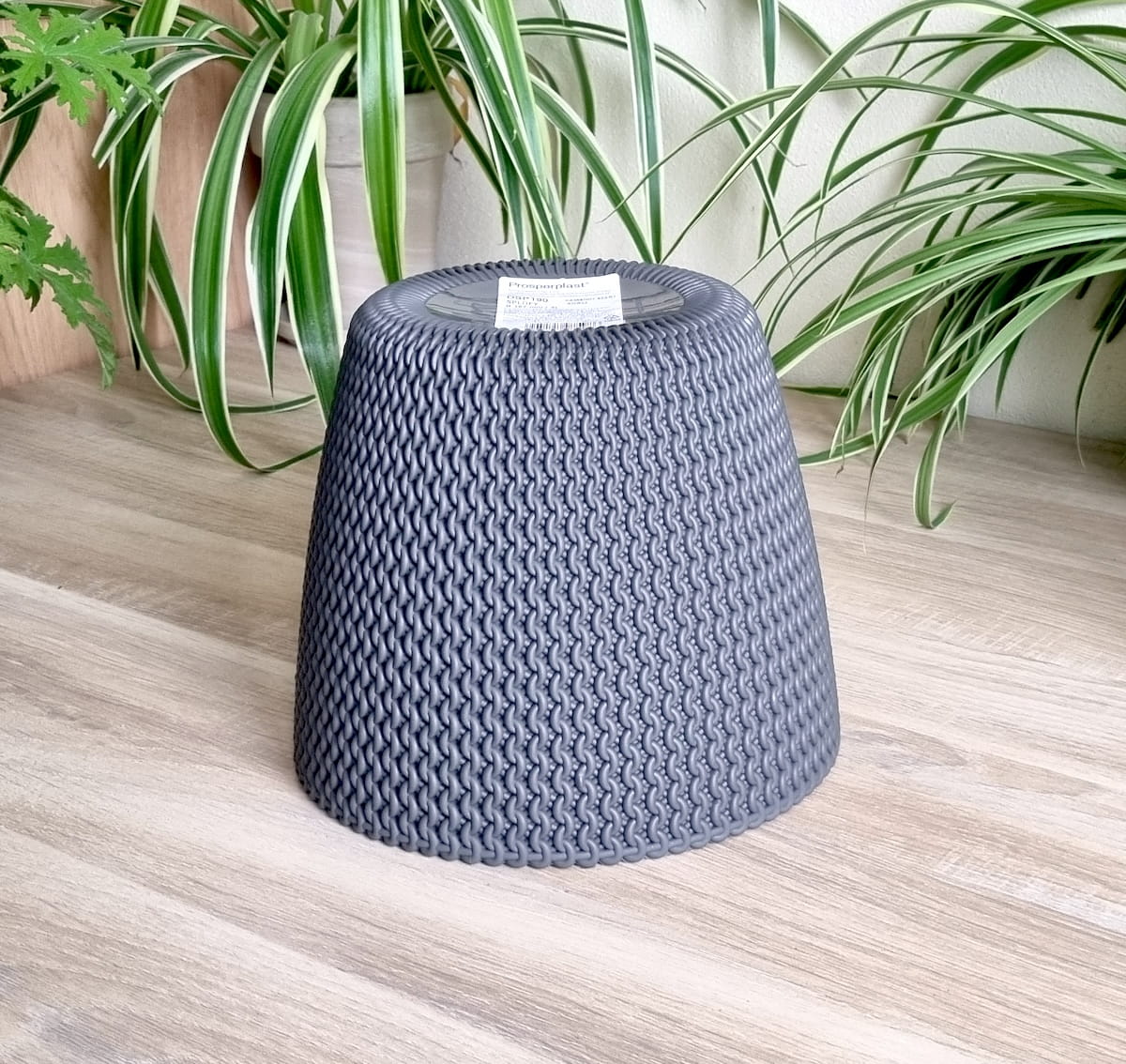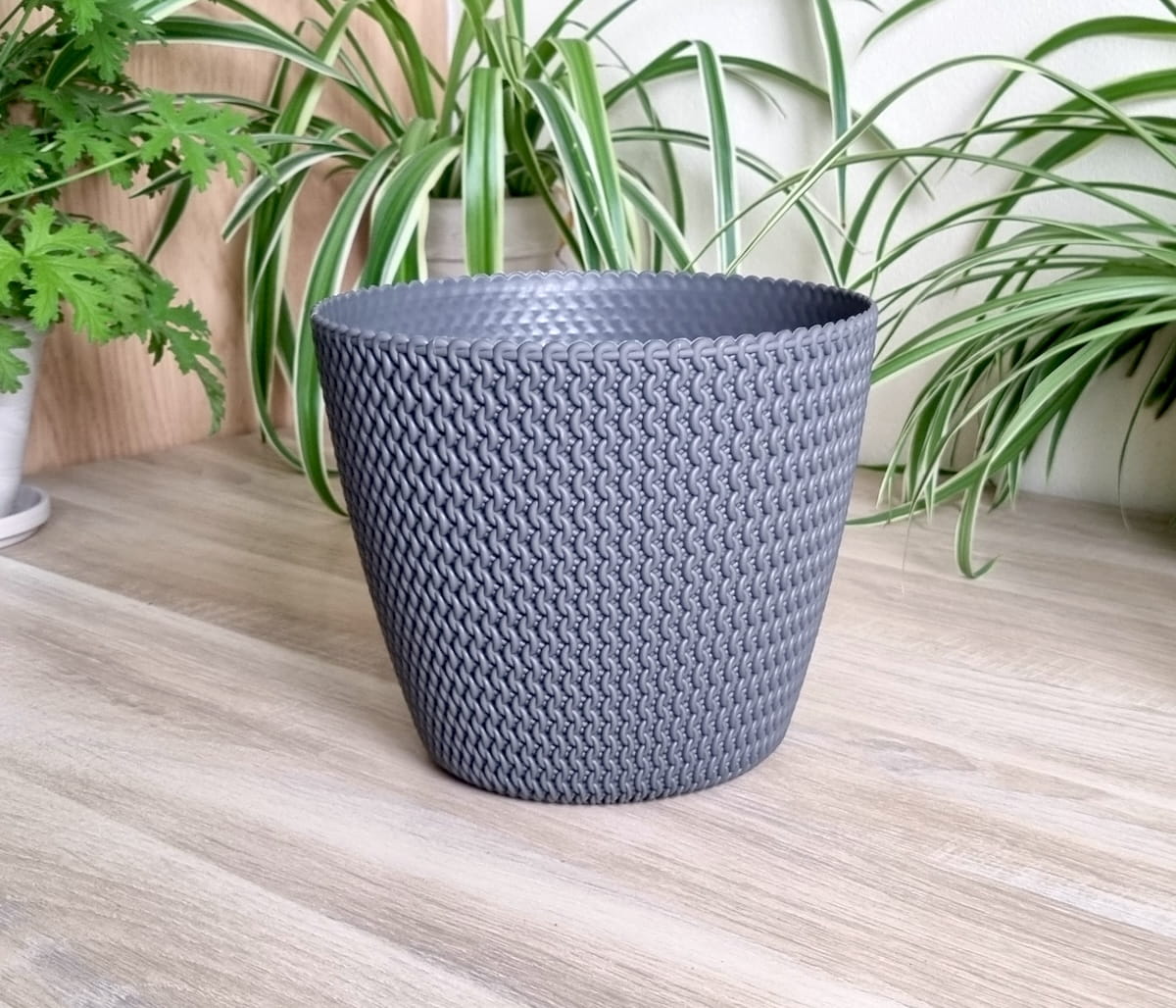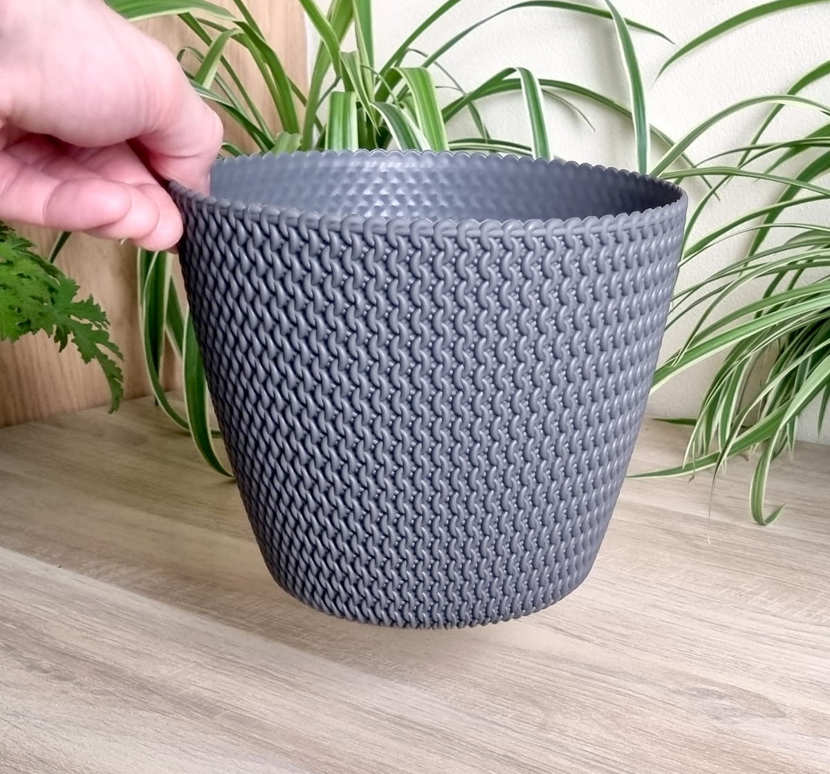 Doniczka Splofy 19cm szara, wzory dziewiarskie - osłonka na kwiaty domowe