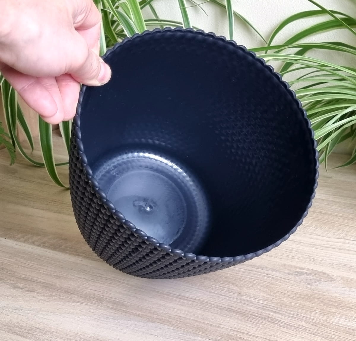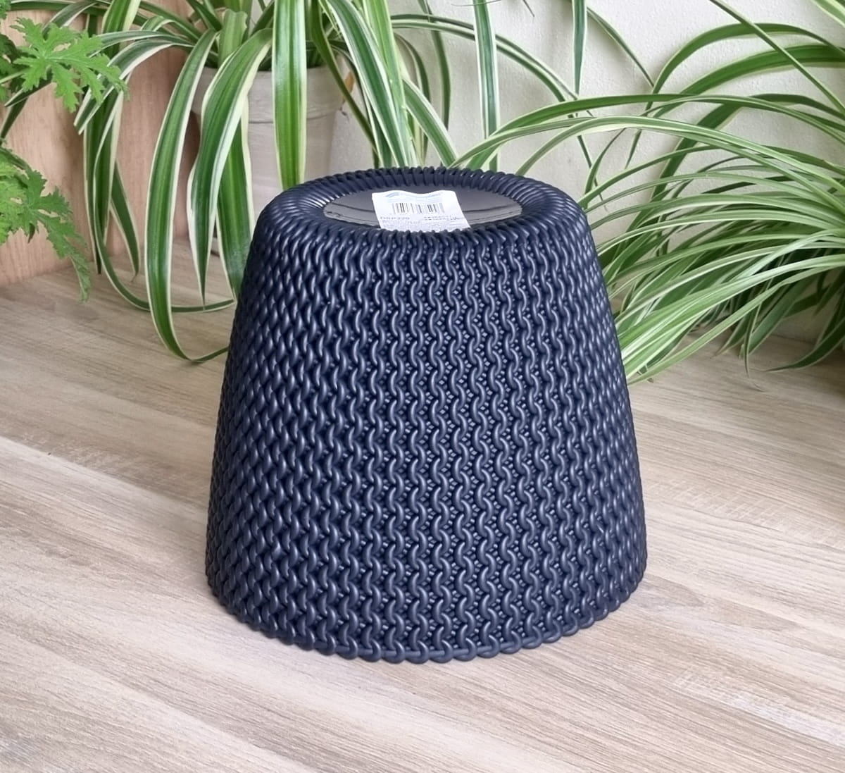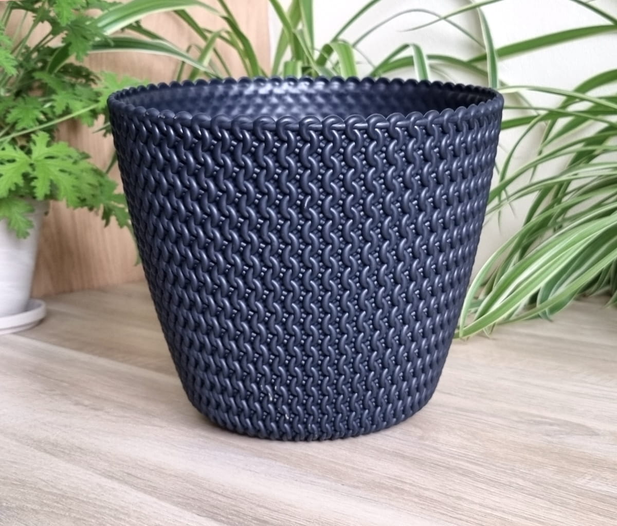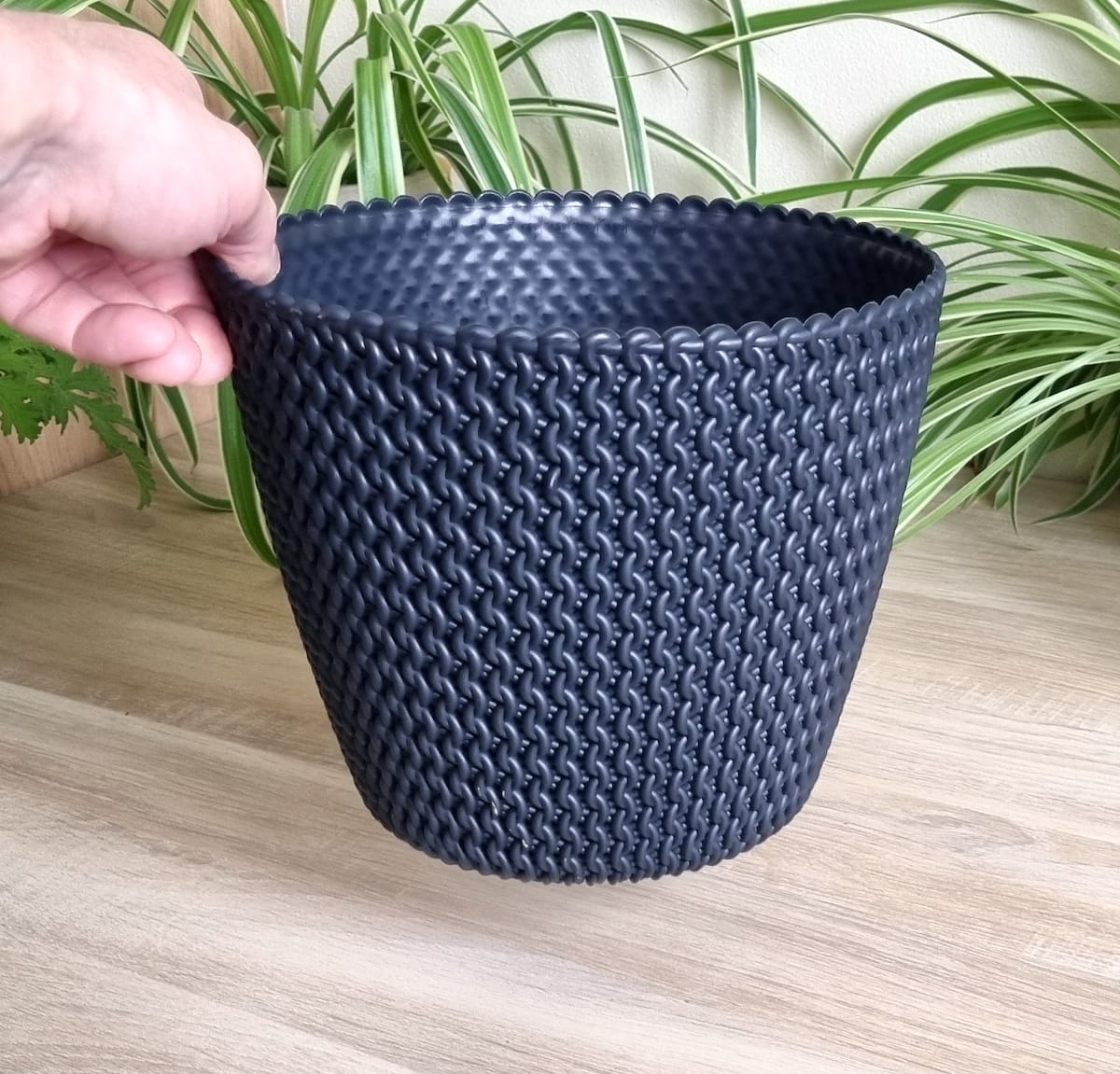 Doniczka Splofy 22cm antracytowa - elegancka osłonka we wzory dziewiarskie