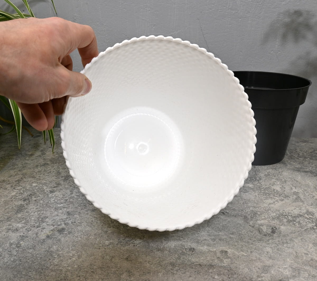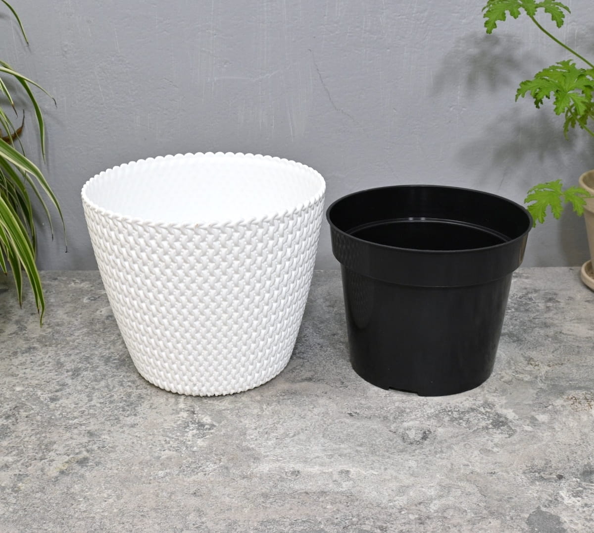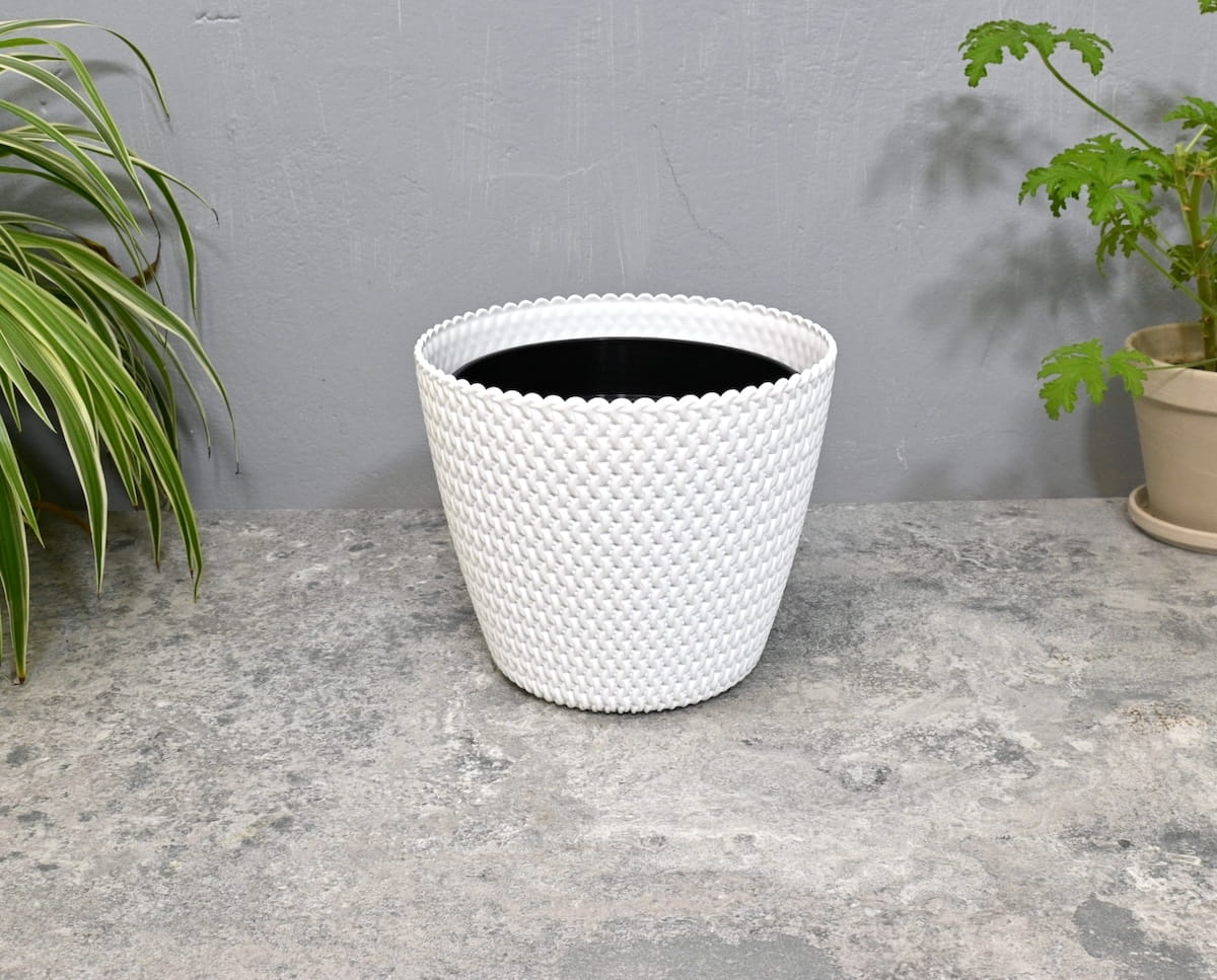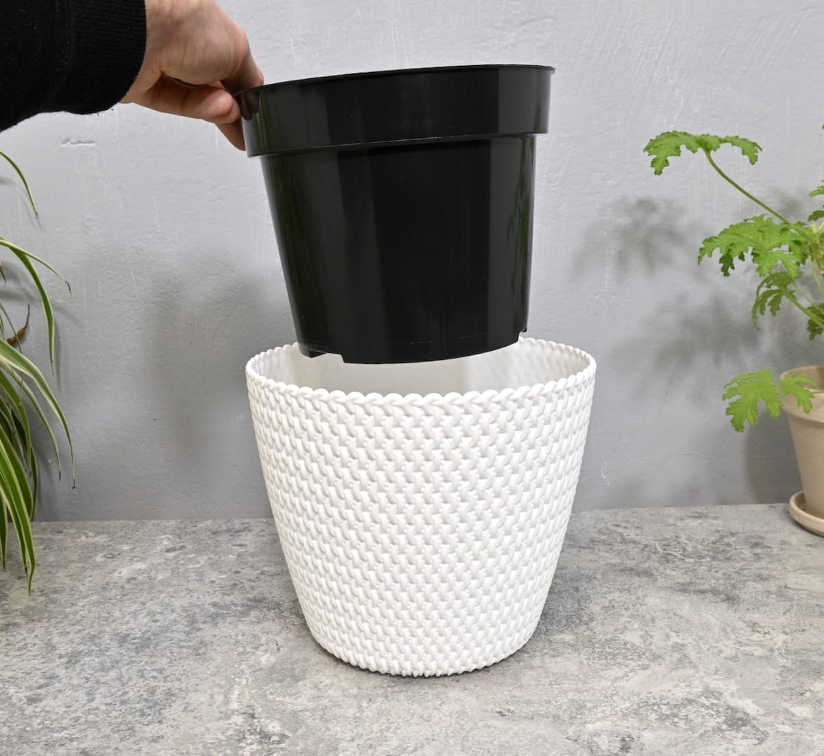 Doniczka Splofy 22cm biała, imitacja wełny - osłonka z wkładem