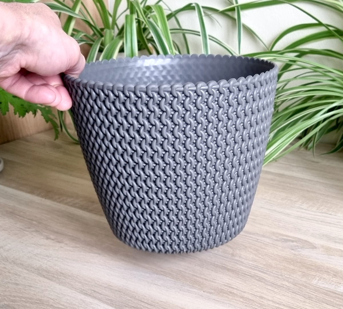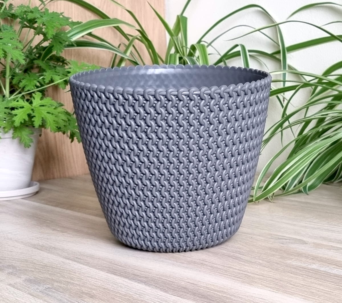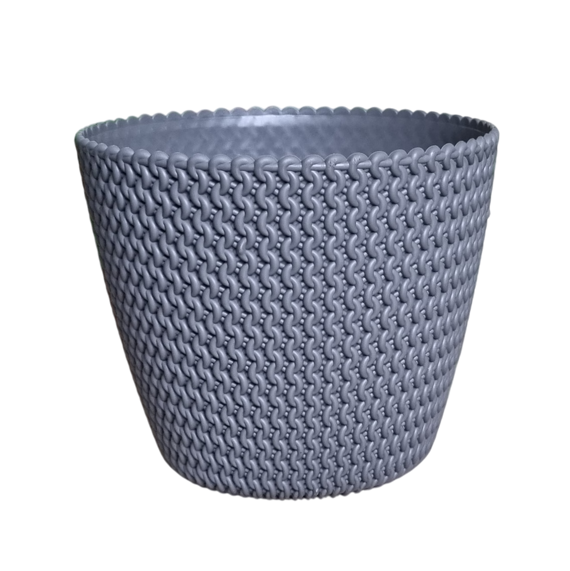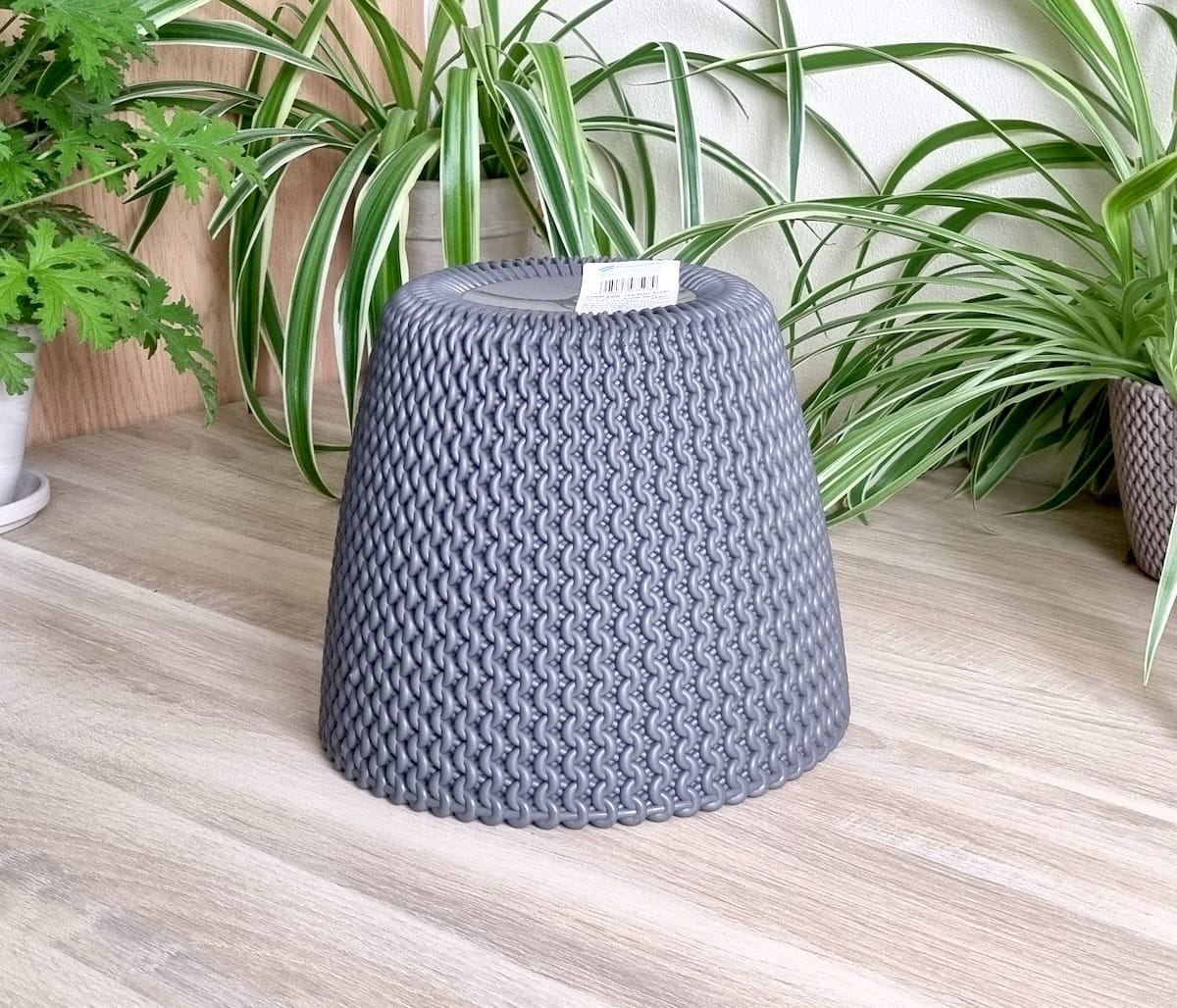 Doniczka Splofy 22cm szara - elegancka osłonka we wzory dziewiarskie