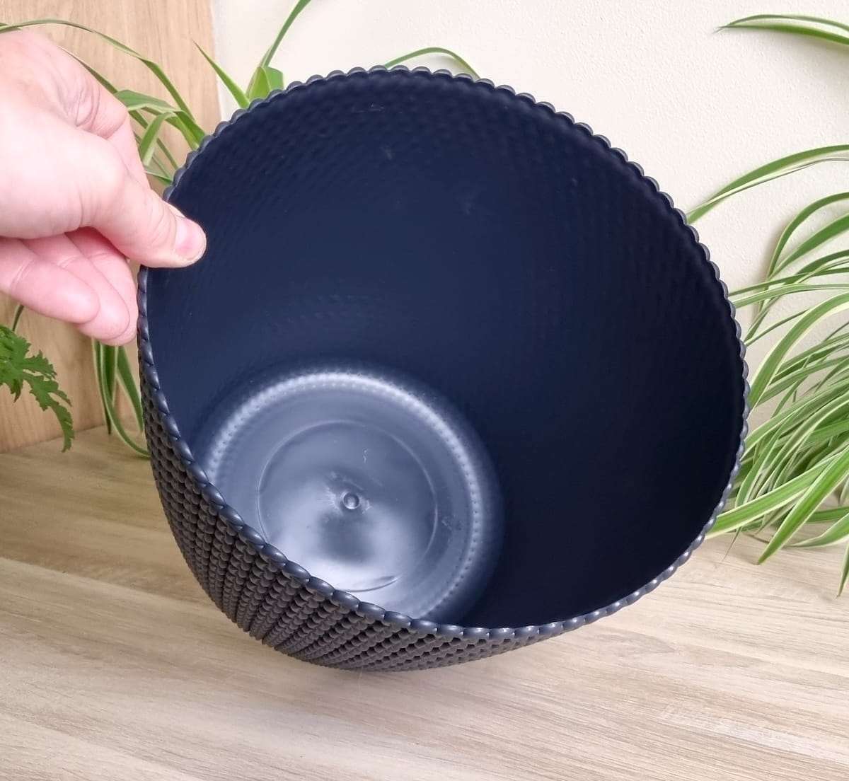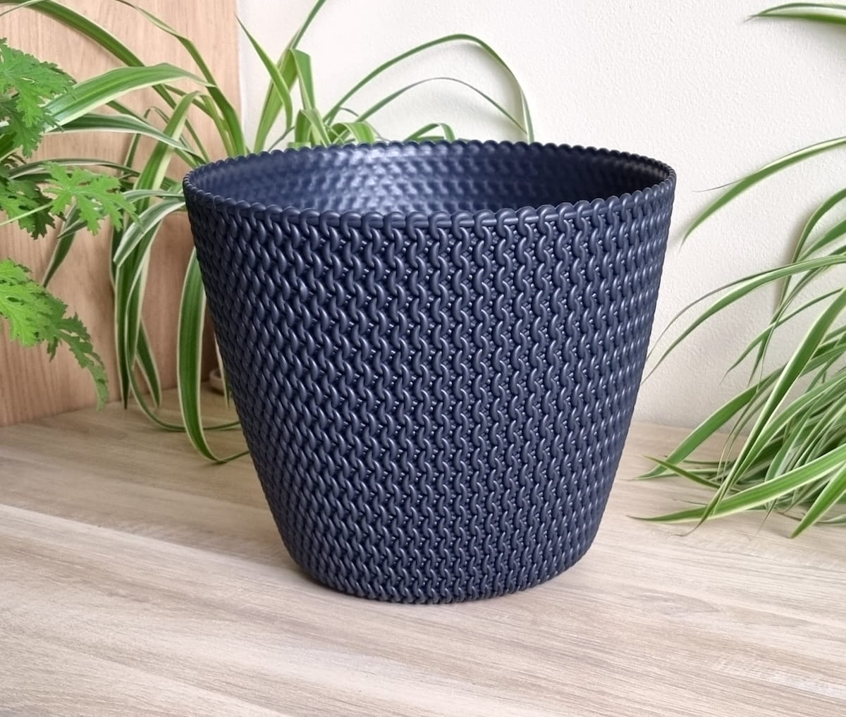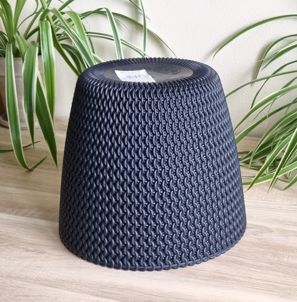 Doniczka Splofy 26cm antracytowa - elegancka osłonka we wzory dziewiarskie