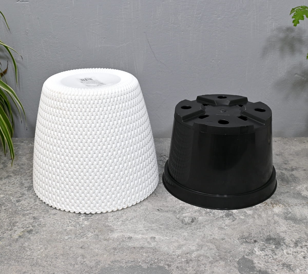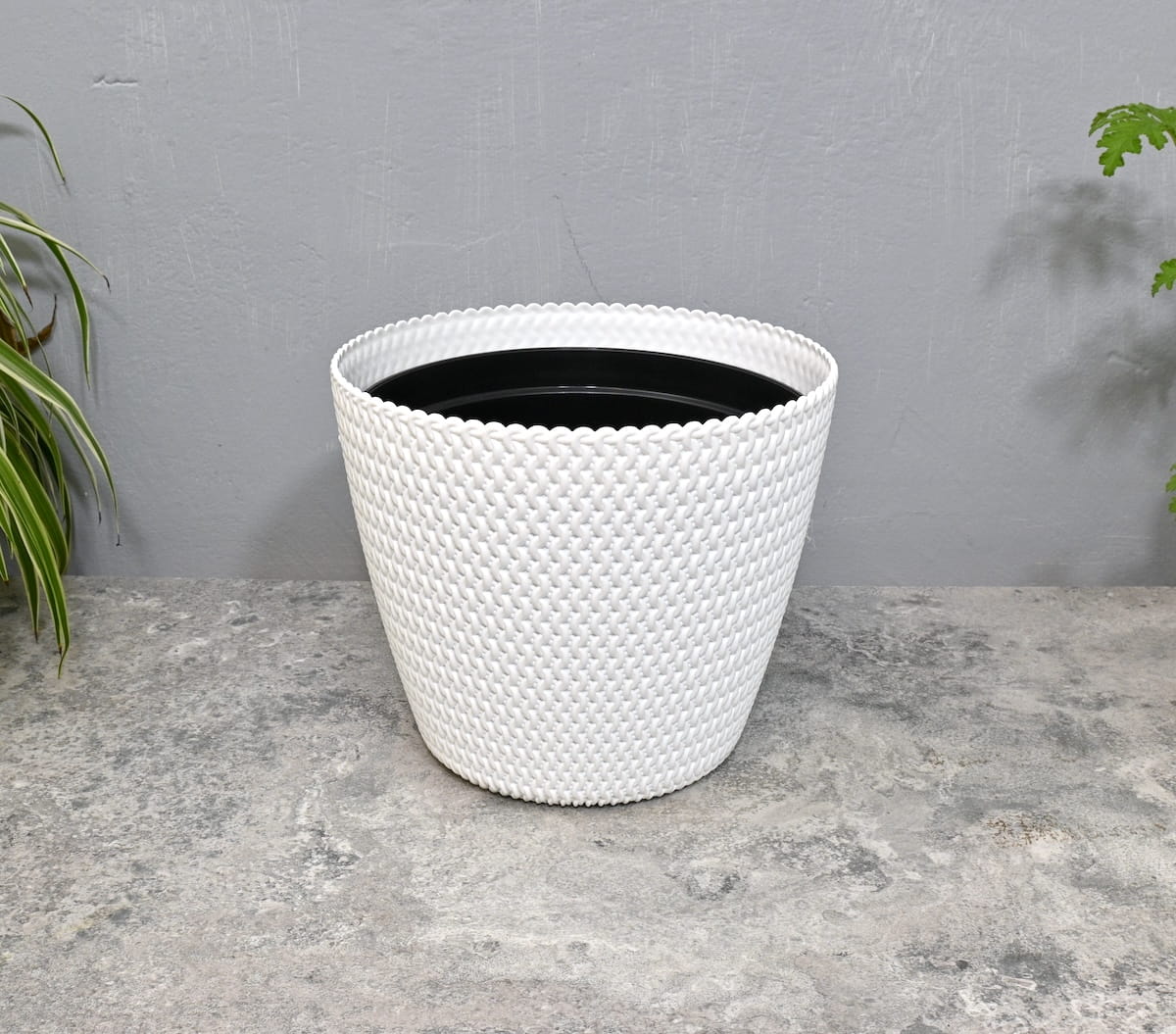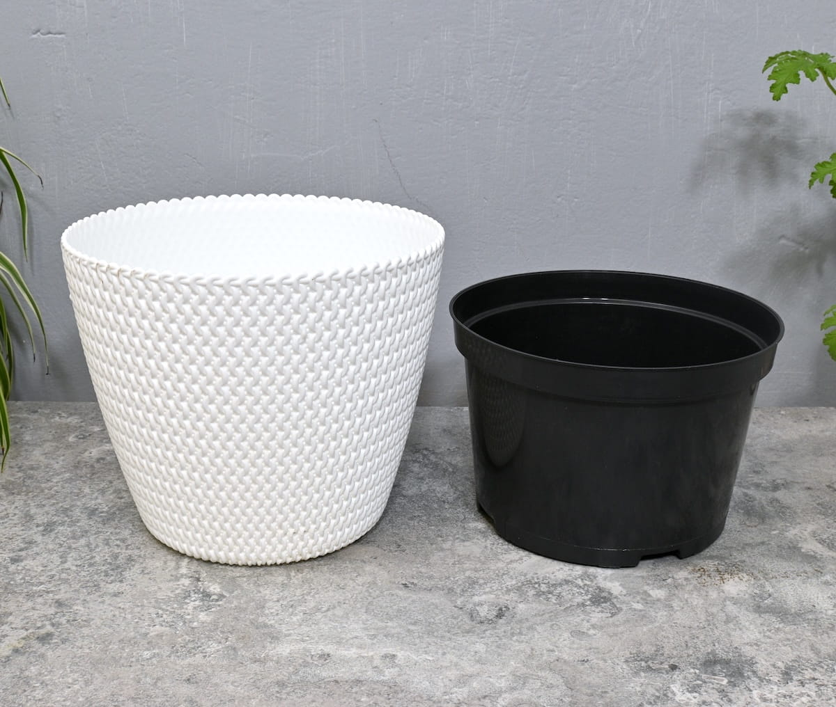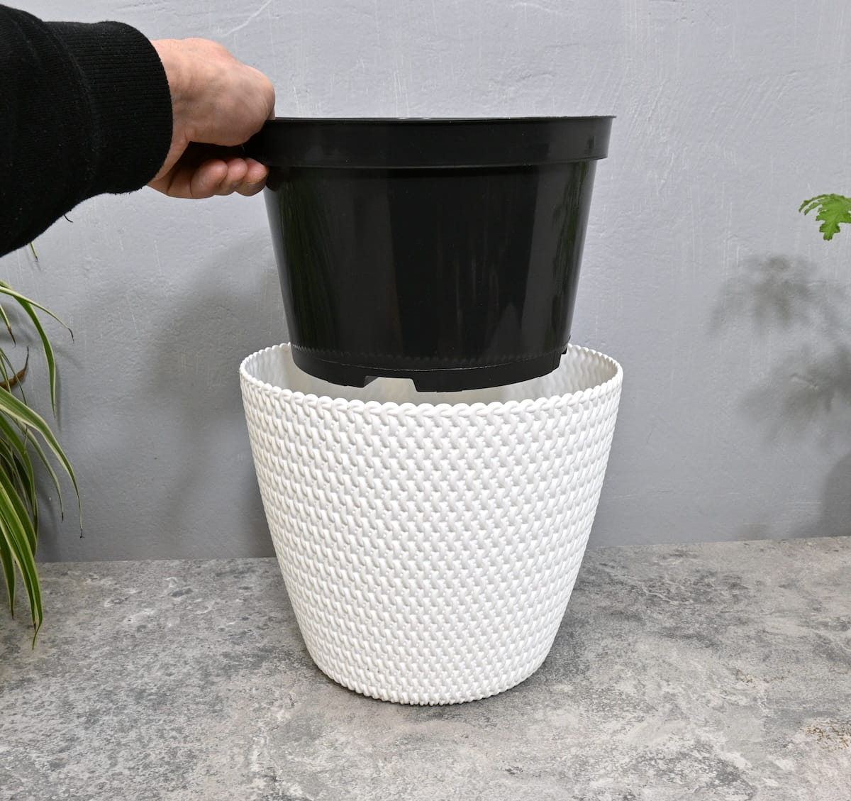 Doniczka Splofy 26cm biała - osłonka + wkład + ziemia z nawozem