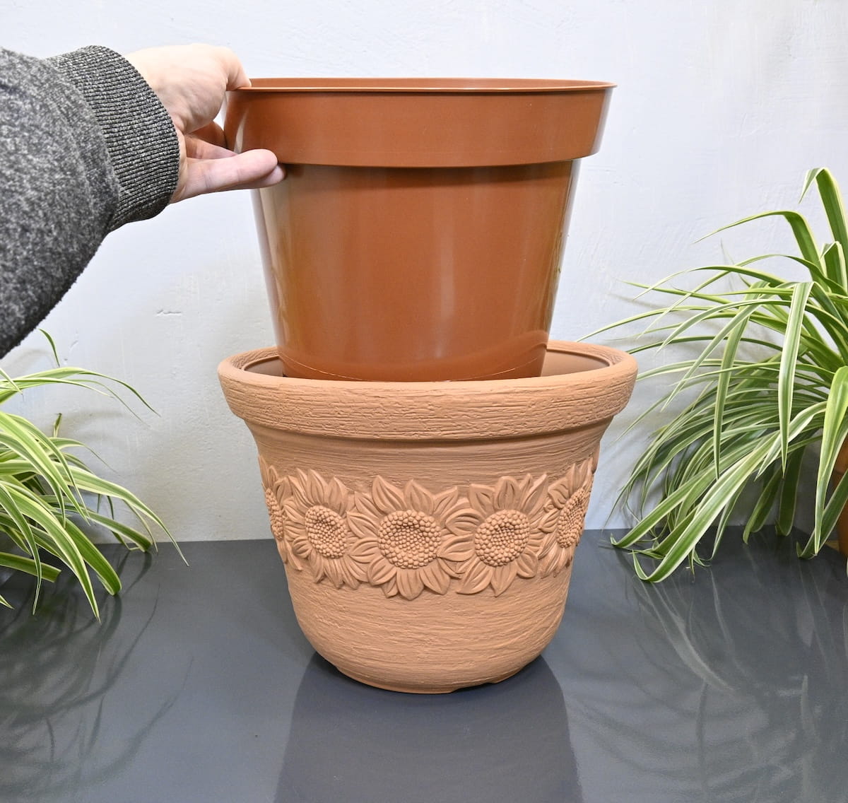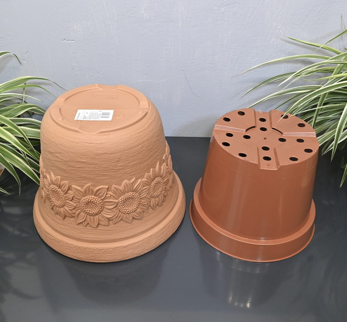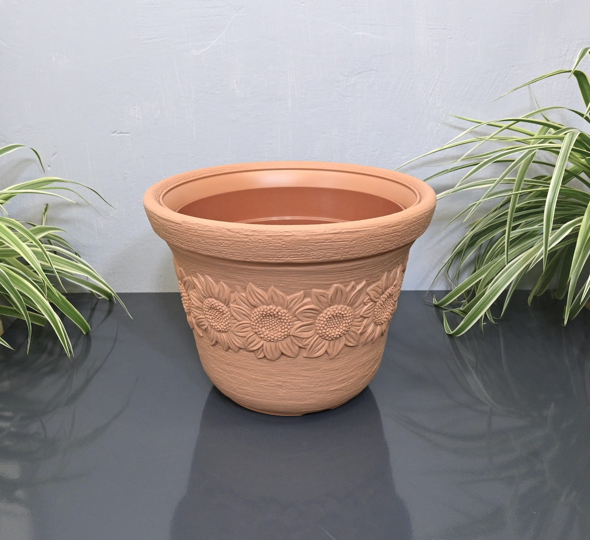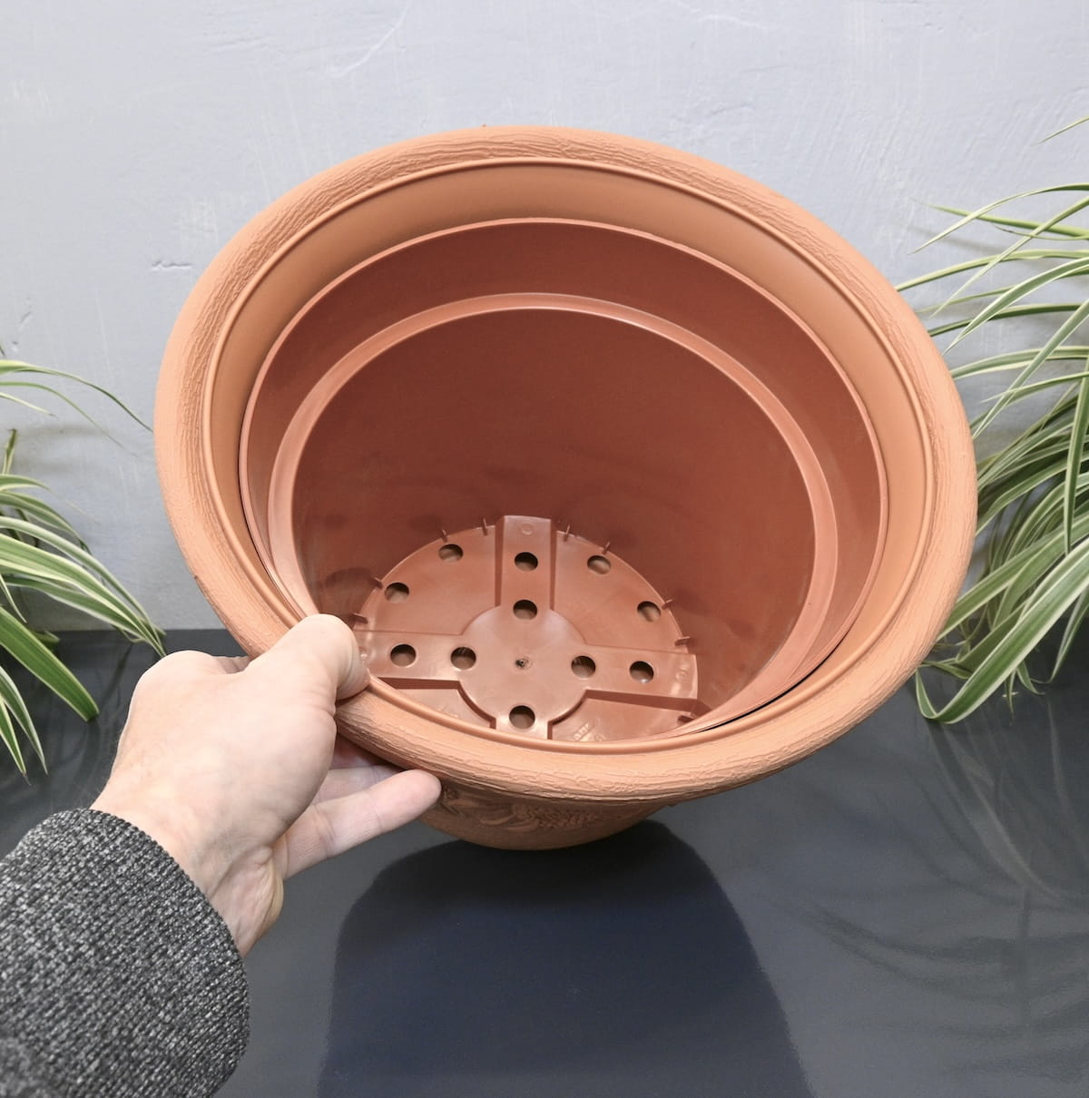 - klasyczna donica ozdobna wiernie imitująca terakotę