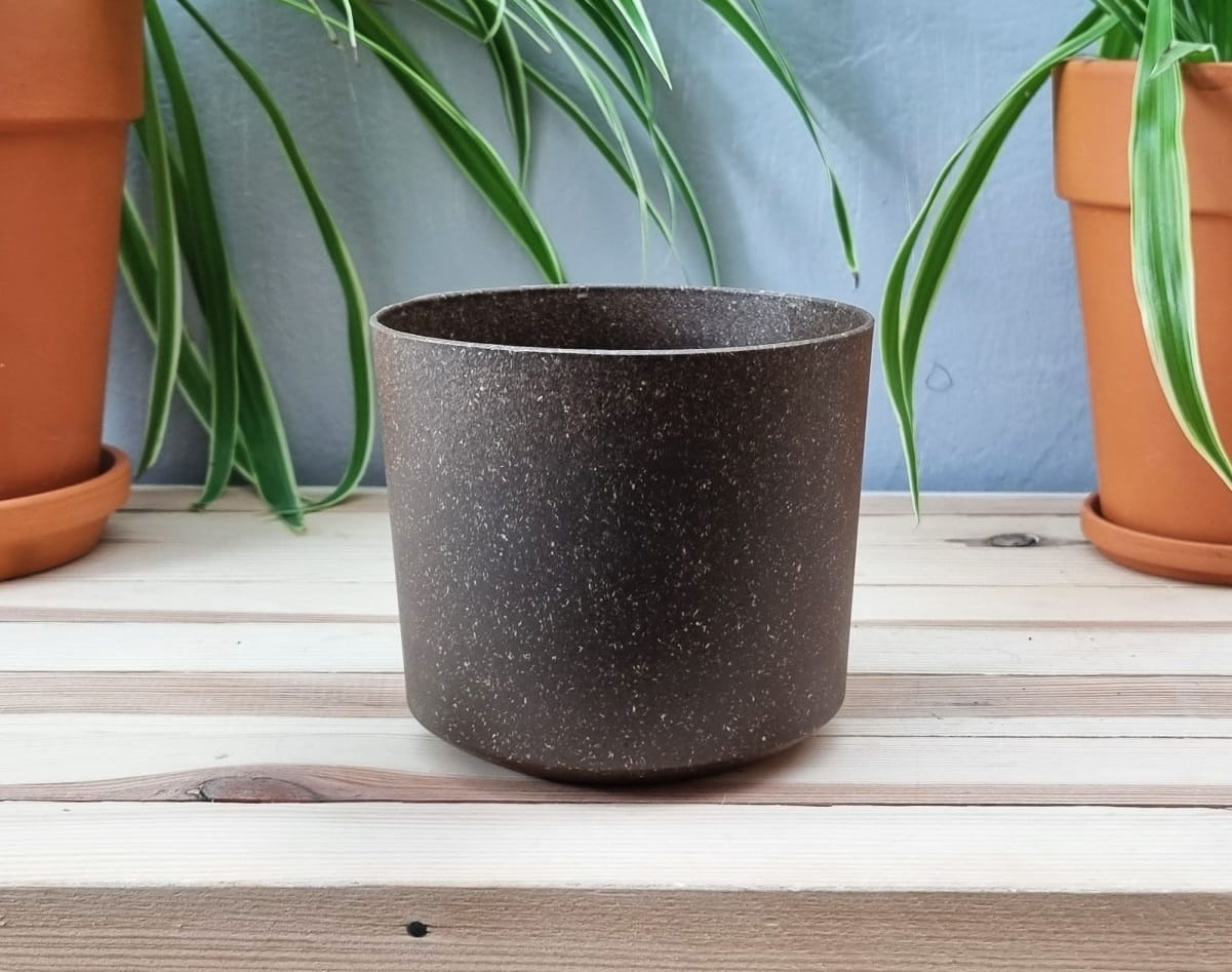 Doniczka TUBO ECO WOOD 1,2L 13cm BRĄZ KAWOWY - osłonka plastikowo-drewniana