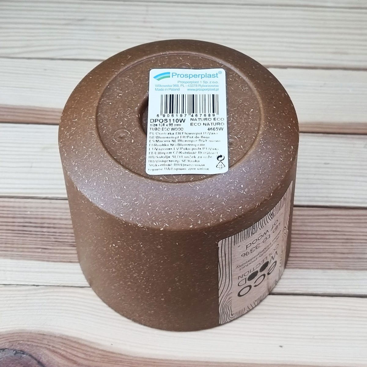 Doniczka TUBO ECO WOOD 0,7L 11cm BRĄZ NATURO - osłonka plastikowo-drewniana