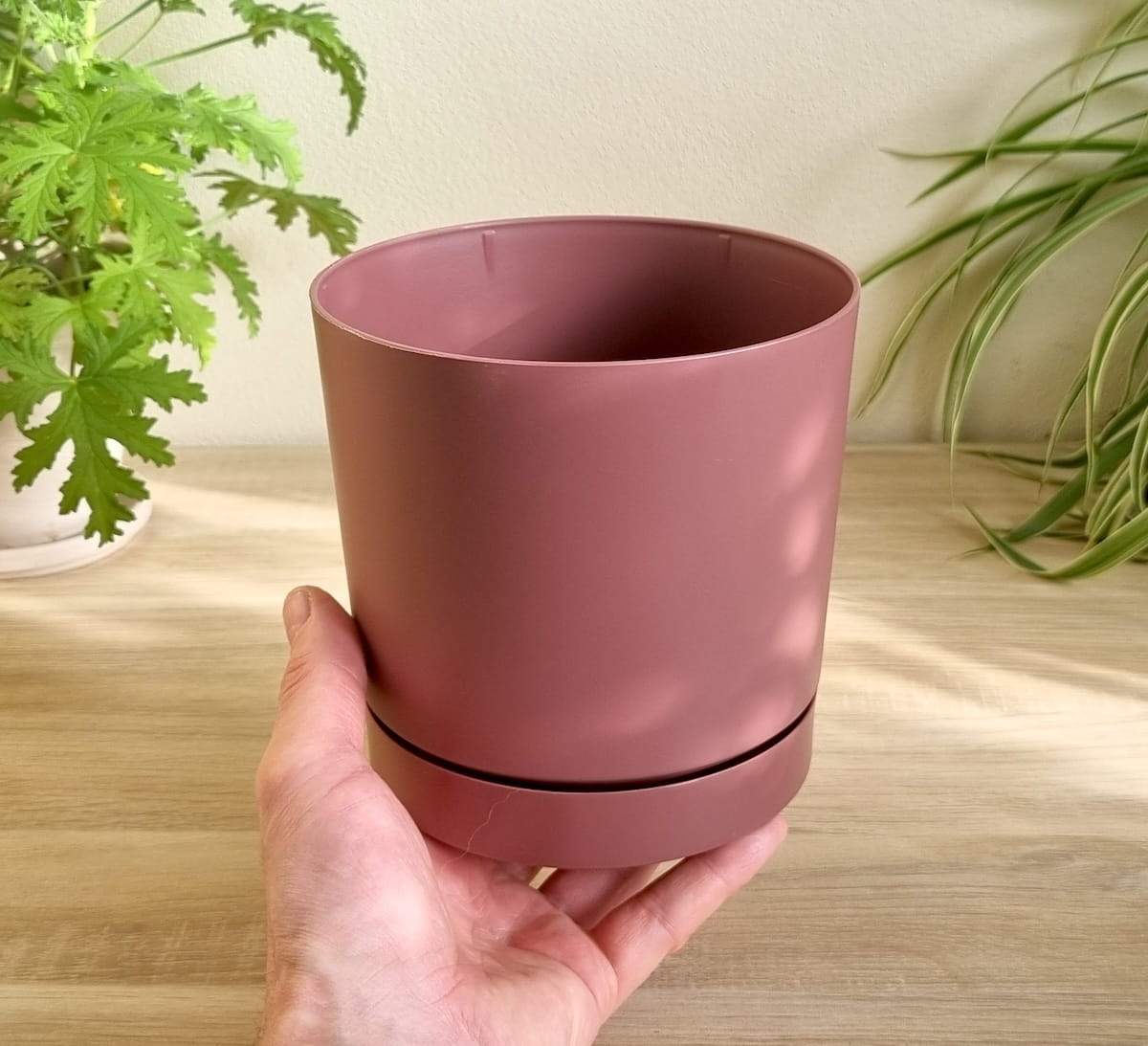- prosta i ponadczasowa doniczka wykonana z wysokiej jakości tworzywa