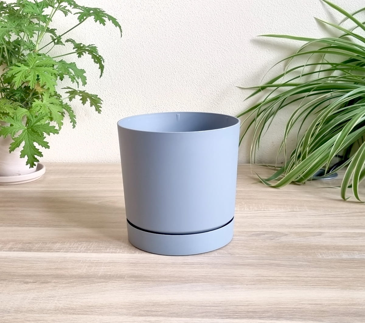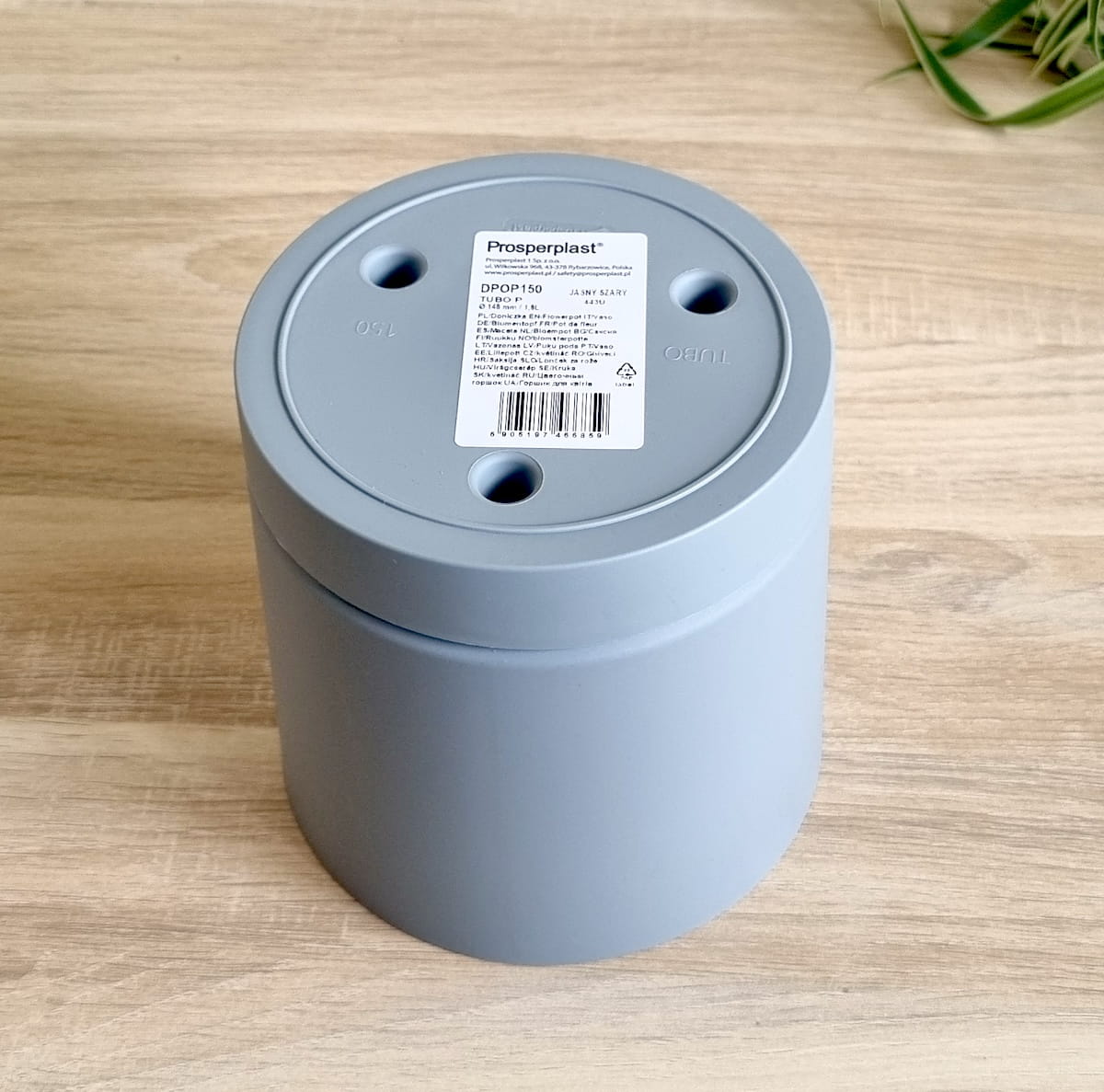 Doniczka Tubo P 15cm 1,8L jasna szara - donica ze zintegrowaną podstawką